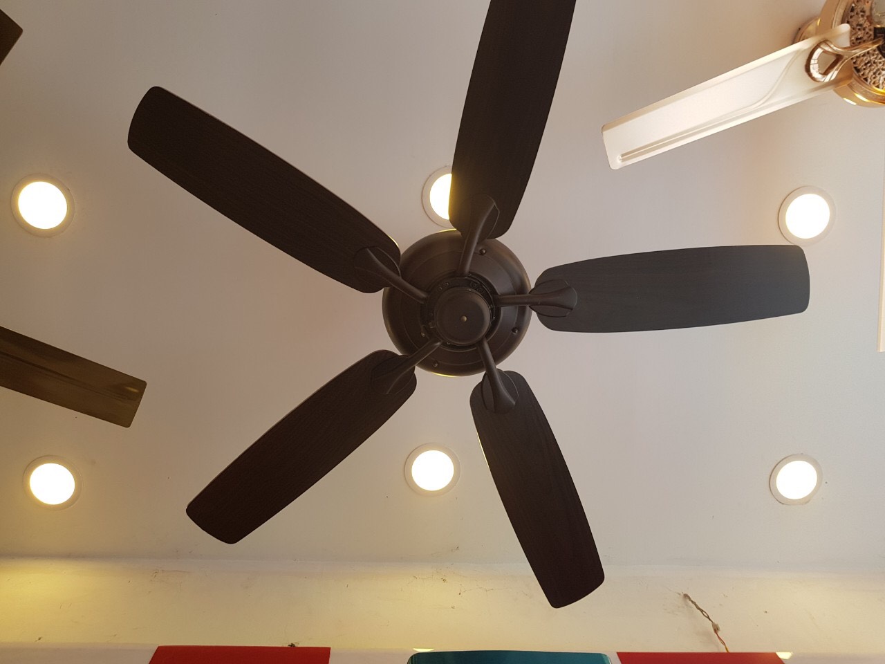 Màu sắc :Đồng xanh Sải cánh : 1320mm Động cơ: 153x15mm Công suất : 75W AC Chất liệu cánh : 5 cánh thép Chao đèn: 5 đèn Ánh sáng : có