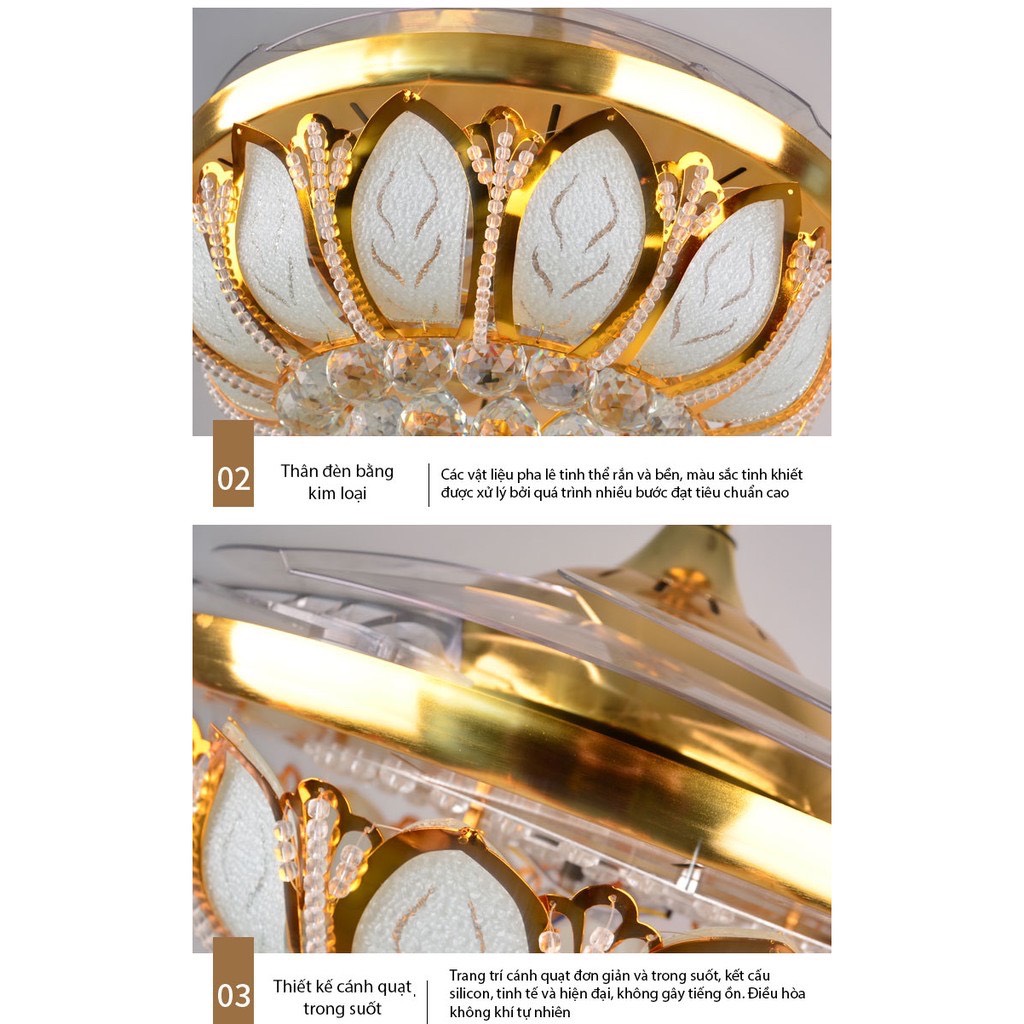 THÔNG TIN CHI TIẾT SẢN PHẨM QUẠT TRẦN: *Tên gọi đầy đủ:Quạt Trần Chao Pha Lê có 3 chế độ ánh sáng đèn trang trí phòng khách, Nhà hàng, quán cafe [Bảo hành 5 năm