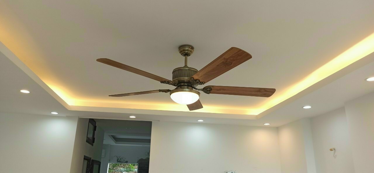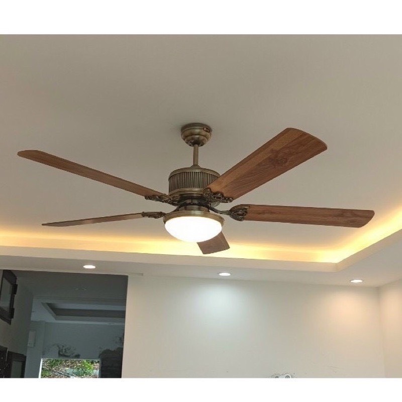 Quạt trần phòng ngủ trang trí phòng khách bàn ăn phong cách cổ điển động cơ đồng bảo hành 48 tháng Chất liệu cánh gỗ thật polywood và cánh sắt Quạt trần phòng ngủ hiện
