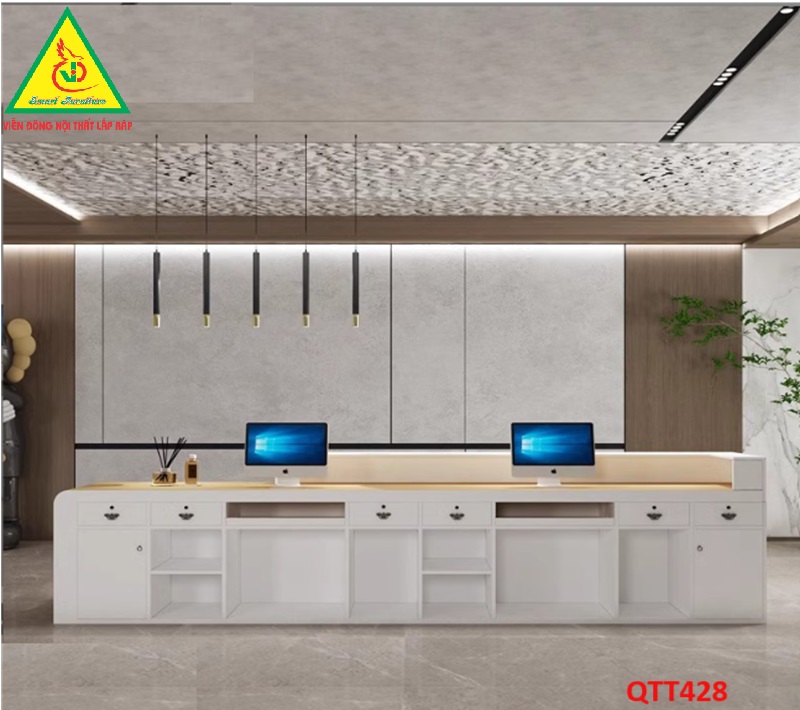 Quầy tiếp tân và quầy tính tiền bằng gỗ là lựa chọn tuyệt vời để tăng cường sự sang trọng, tự nhiên và chuyên nghiệp cho không gian của bạn.