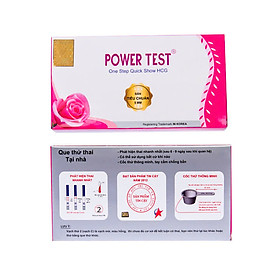 Tên sản phẩm: Que thử thai PowerTest Kích thước test: rộng 5mm Tính năng: Phát hiện thai sớm sau 6 -9 ngày trứng rụng ƯU ĐIỂM: Phát hiện thai sớm sau 6 -9 ngày