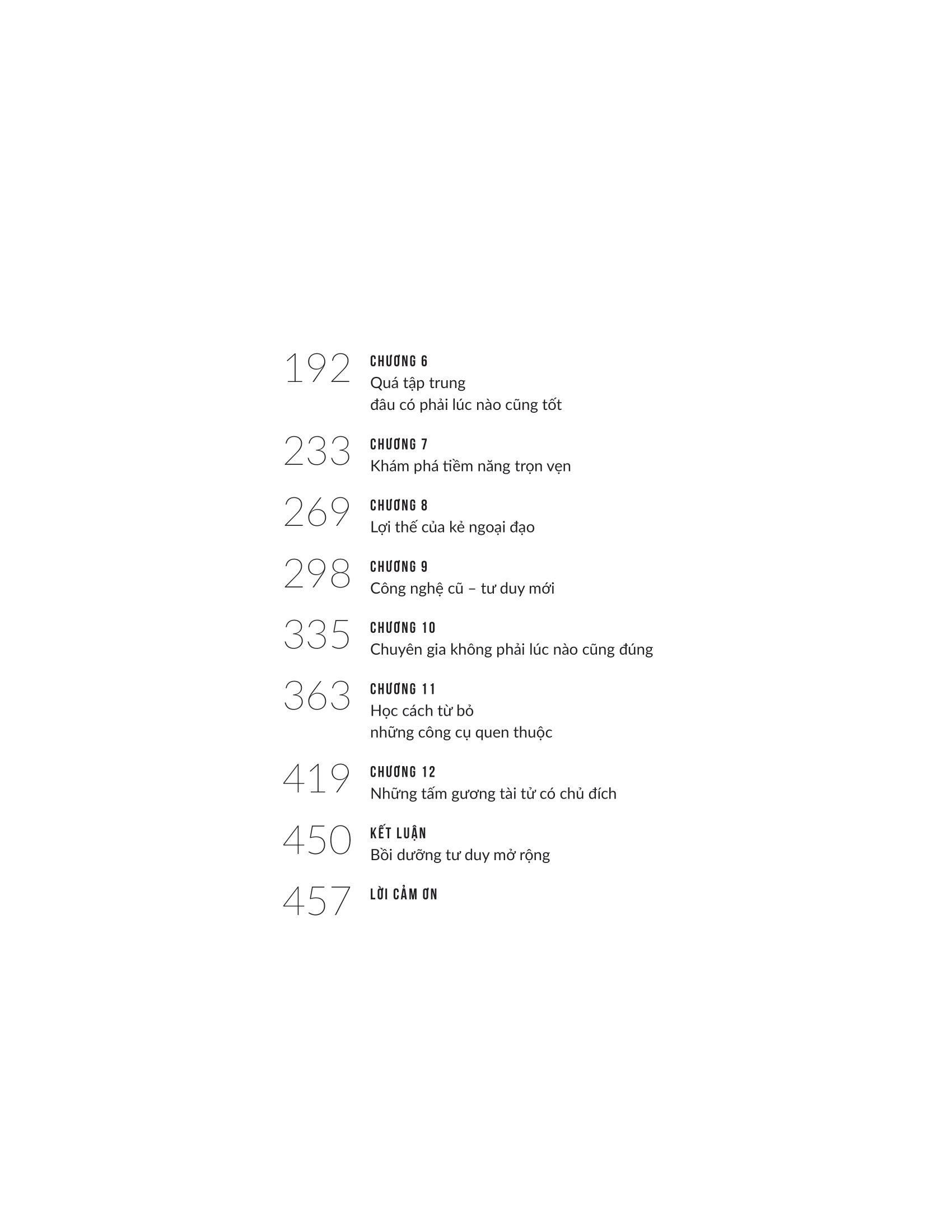 David Epstein đã kiểm tra các vận động viên, nghệ sĩ, nhạc sĩ, nhà phát minh, nhà dự báo và nhà khoa học thành công nhất thế giới. Ông phát hiện ra rằng trong hầu hết các lĩnh vực – đặc biệt là những lĩnh vực phức tạp và khó đoán – những người có tư duy tổng quát (chứ không phải chuyên gia) đều có tố chất xuất sắc. Những người theo chủ nghĩa tổng quát thường tìm ra con đường của m.ình muộn và họ có nhiều mối quan tâm hơn là tập trung vào một. Họ cũng sáng tạo hơn, nhanh nhẹn hơn và có thể tạo ra những kết nối mà những đồng nghiệp chuyên môn hóa không thể nhìn thấy.