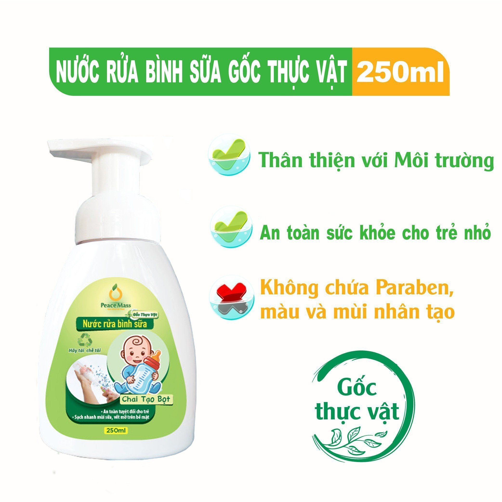 - .Sản phẩm đựng trong chai tạo bọt tiết kiệm hơn rất nhiều lần, Sạch bong kin kít, làm sạch nhanh chóng vết và mùi sữa bám trên bề mặt bình. Cách bảo quản, lưu ý khi sử dụng Nước Rửa Bình Sữa Peace Mass 250ml: