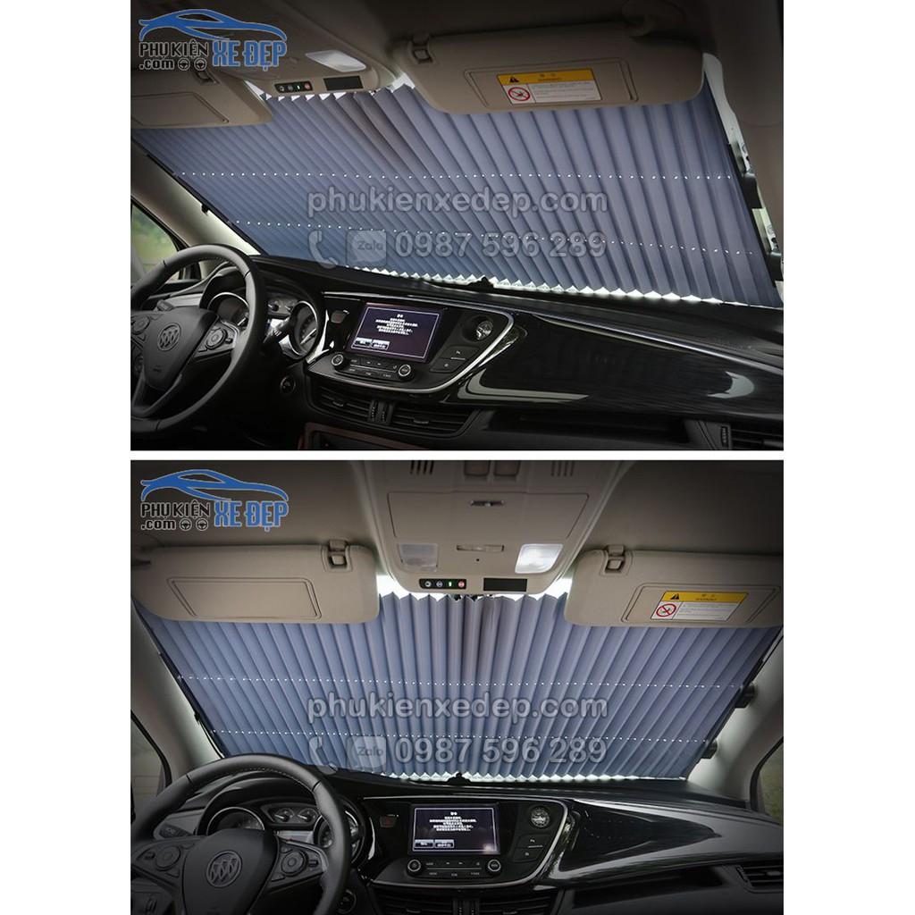 Rèm che nắng kính lái ô tô loại kéo, để bên trong kính ô tô Chất liệu rèm: Giấy nhôm cách nhiệt và Polime chống nóng. Khung được làm từ hợp kim nhôm cao cấp