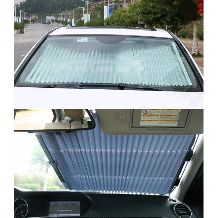 - Rèm che nắng kính lái ô tô tráng nhôm được thiết kế dạng rèm kéo, cấu tạo gồm các lá nhôm phủ vào vải polyester cao cấp và dày. Tấm che nắng ô tô này dùng được cả ở kính lái và kính hậu với hiệu quả chống nắng tuyệt vời, nhiệt độ có thể giảm hơn 2/3 so với khi không dùng.