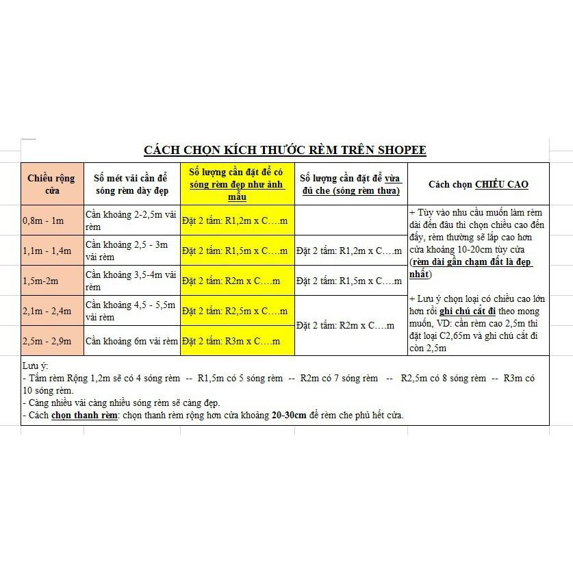 LƯU Ý: BẠN VUI LÒNG ĐỌC KỸ MÔ TẢ ĐỂ TRÁNH ĐẶT NHẦM KÍCH THƯỚC - ẤN FOLLOW SHOP ĐỂ LẤY MÃ GIẢM GIÁ ! - Rèm chưa bao gồm thanh treo, bạn cần mua
