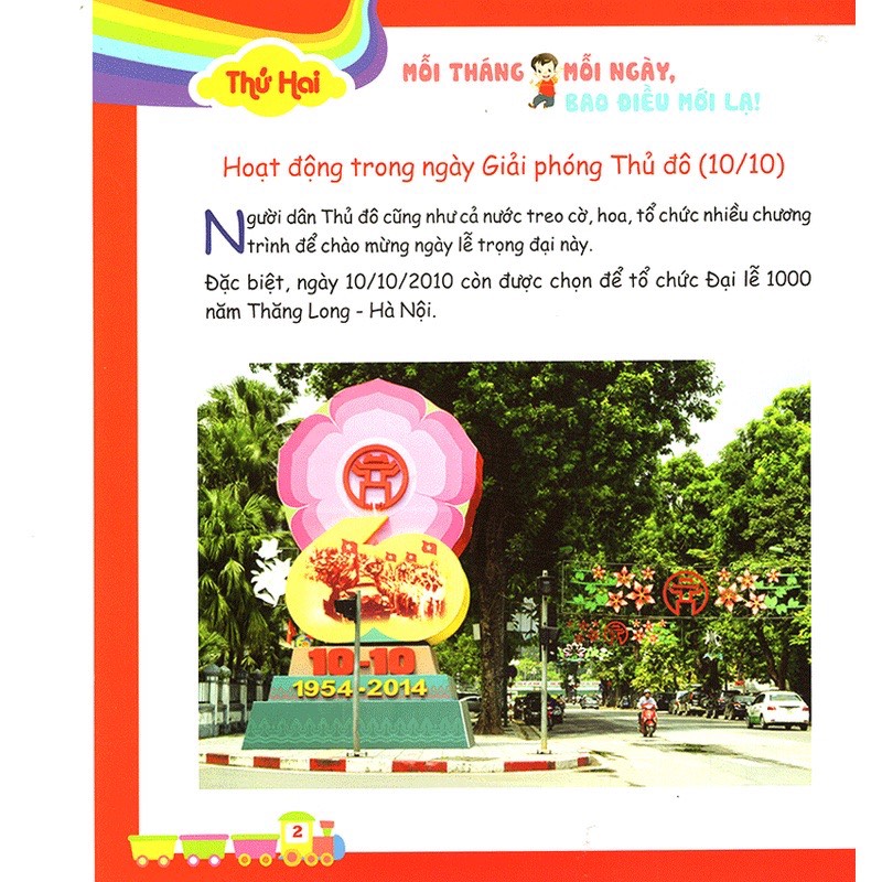 Bộ sách được biên soạn theo nội dung chương trình giáo dục dành cho lứa tuổi mầm non từ 3-6 tuổi. Nội dung mỗi cuốn được chia theo từng ngày trong tuần: 7 chuyên mục tương ứng với 7 ngày trong tuần, giúp trẻ không nhàm chán vì phụ huynh có thể tương tác cùng con các nội dung khác nhau mỗi ngày. Cụ thể nội dung mỗi ngày như sau: