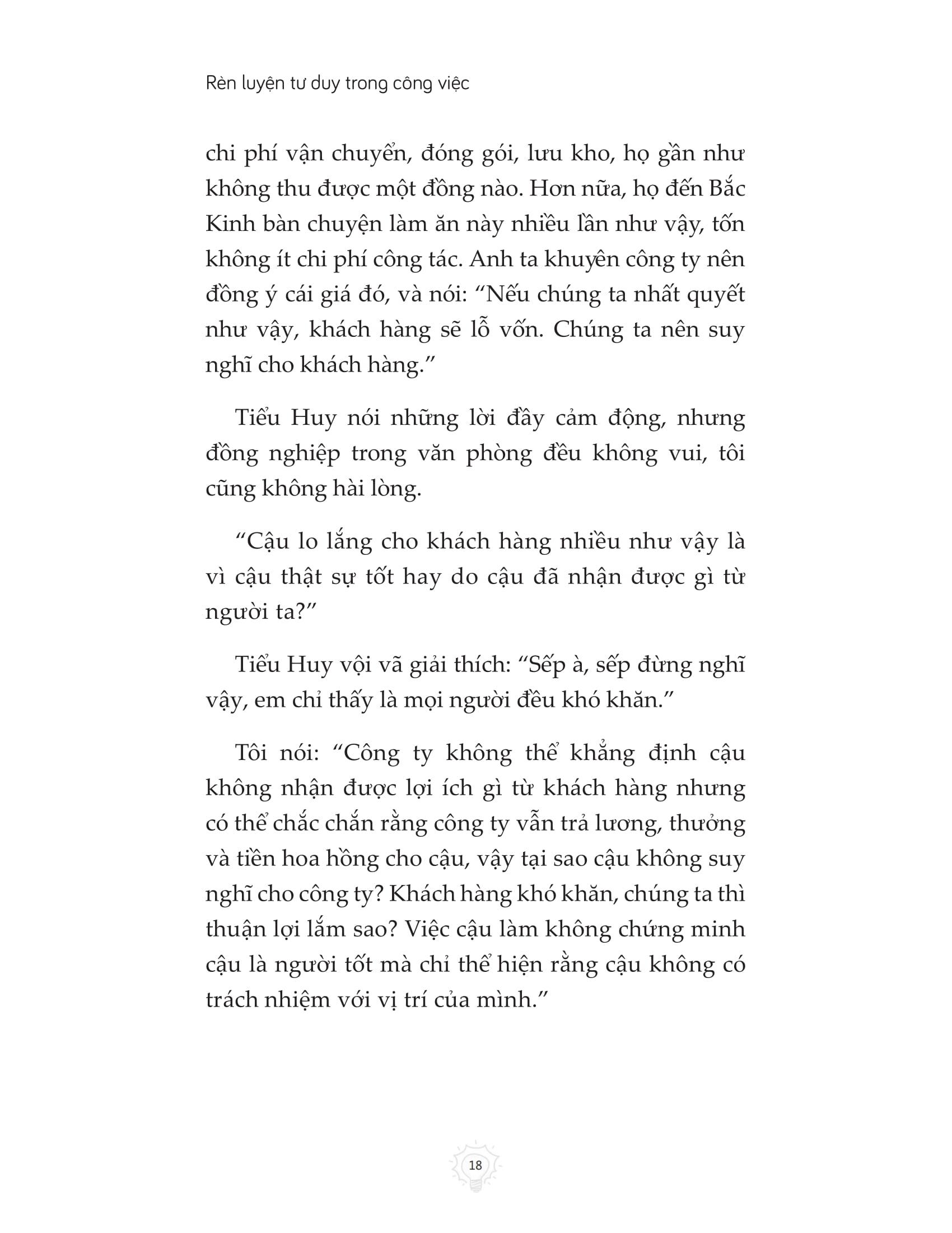 “Rèn luyện tư duy trong công việc” sẽ giúp bạn đánh thức năng lực tư duy của bản thân, từ đó nâng cao hiệu suất và chất lượng làm việc. Bằng cách rèn luyện phương pháp giải quyết vấn đề thông minh và nuôi dưỡng các mối quan hệ một cách hợp lý, tất cả chúng ta đều có thể nâng tầm bản thân trong mọi lĩnh vực cuộc sống.