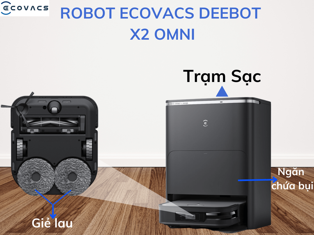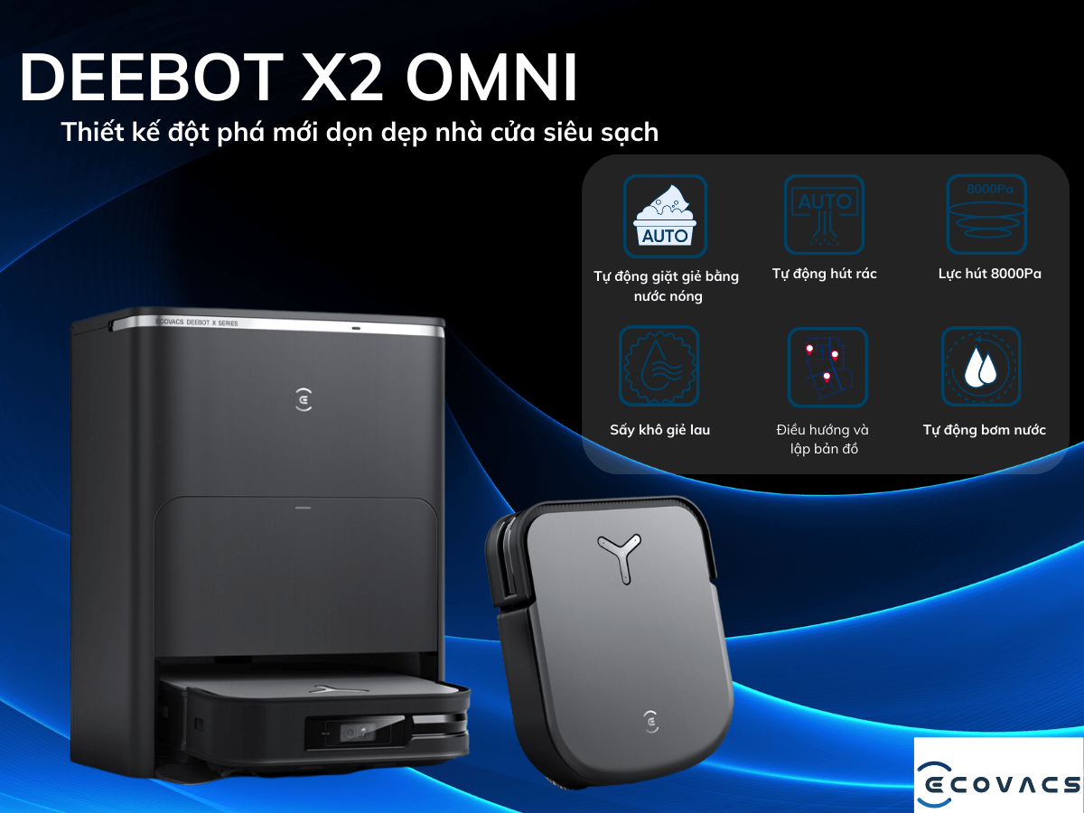 - Với chức năng hút bụi và lau nhà trên cùng một sản phẩm, Ecovacs Deebot X2 OMNI đảm bảo lau dọn nhà cửa hiệu quả lại tiết kiệm thời gian chỉ với 1 chu trình làm sạch duy nhất.