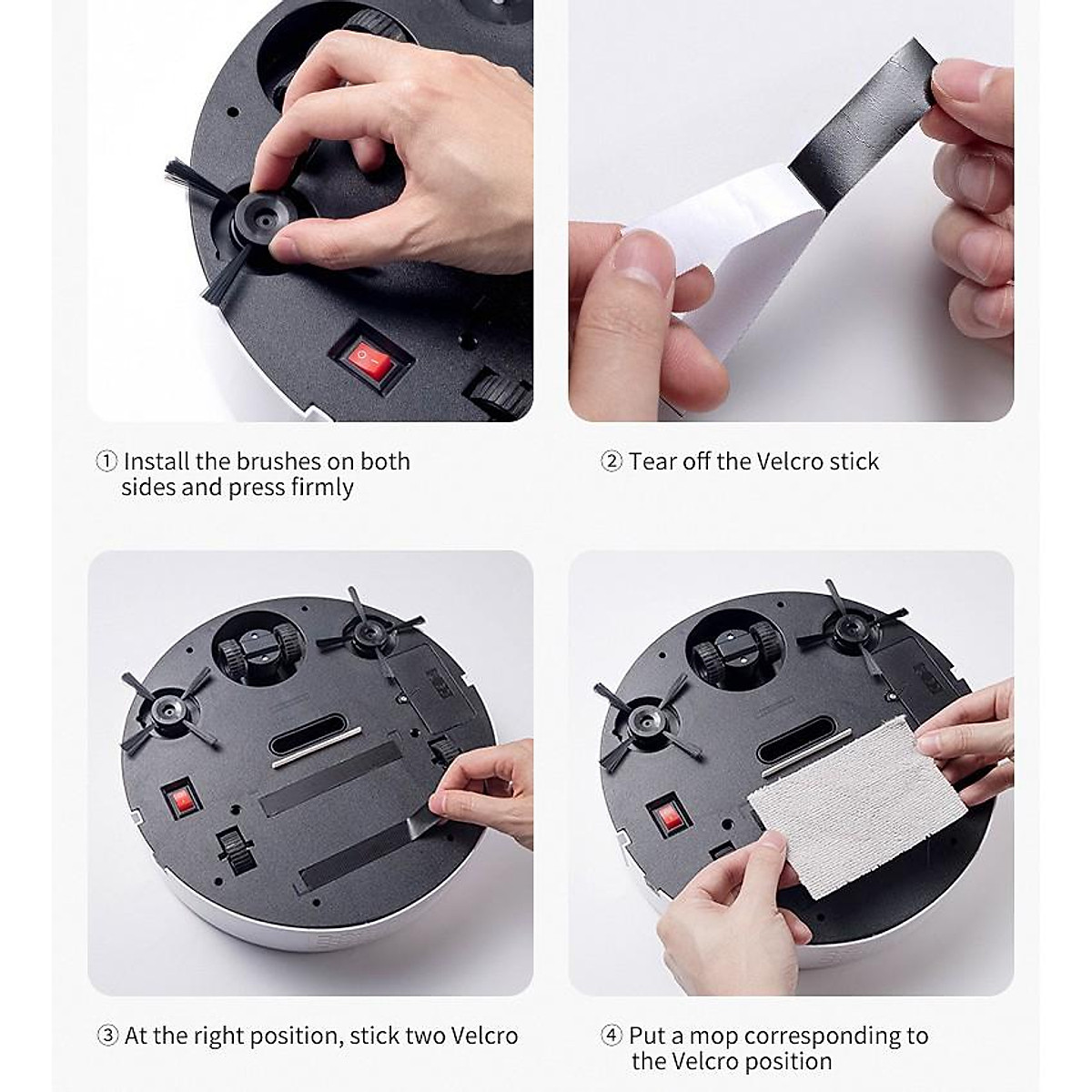 Tự động quét nhà + hút bụi + lau nhà,Tự động cảm biến để tránh né các vật cản,Tự động tìm bụi bẩn để quét, để hút và lau nhà sạch sẽ,Lau nhà bằng vải ướt kèm theo máy rất tiện lợi