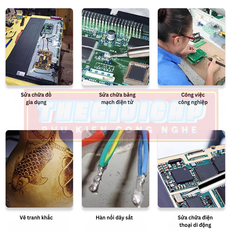 Mỏ hàn chì điều chỉnh nhiệt độ 907 - 60W, tặng 01 thiếc sunchi + 01 hộp nhựa thông Mỏ hàn chì điều chỉnh nhiệt độ 907 60W là tay hàn chuyên dùng cho việc sửa chữa các thiết