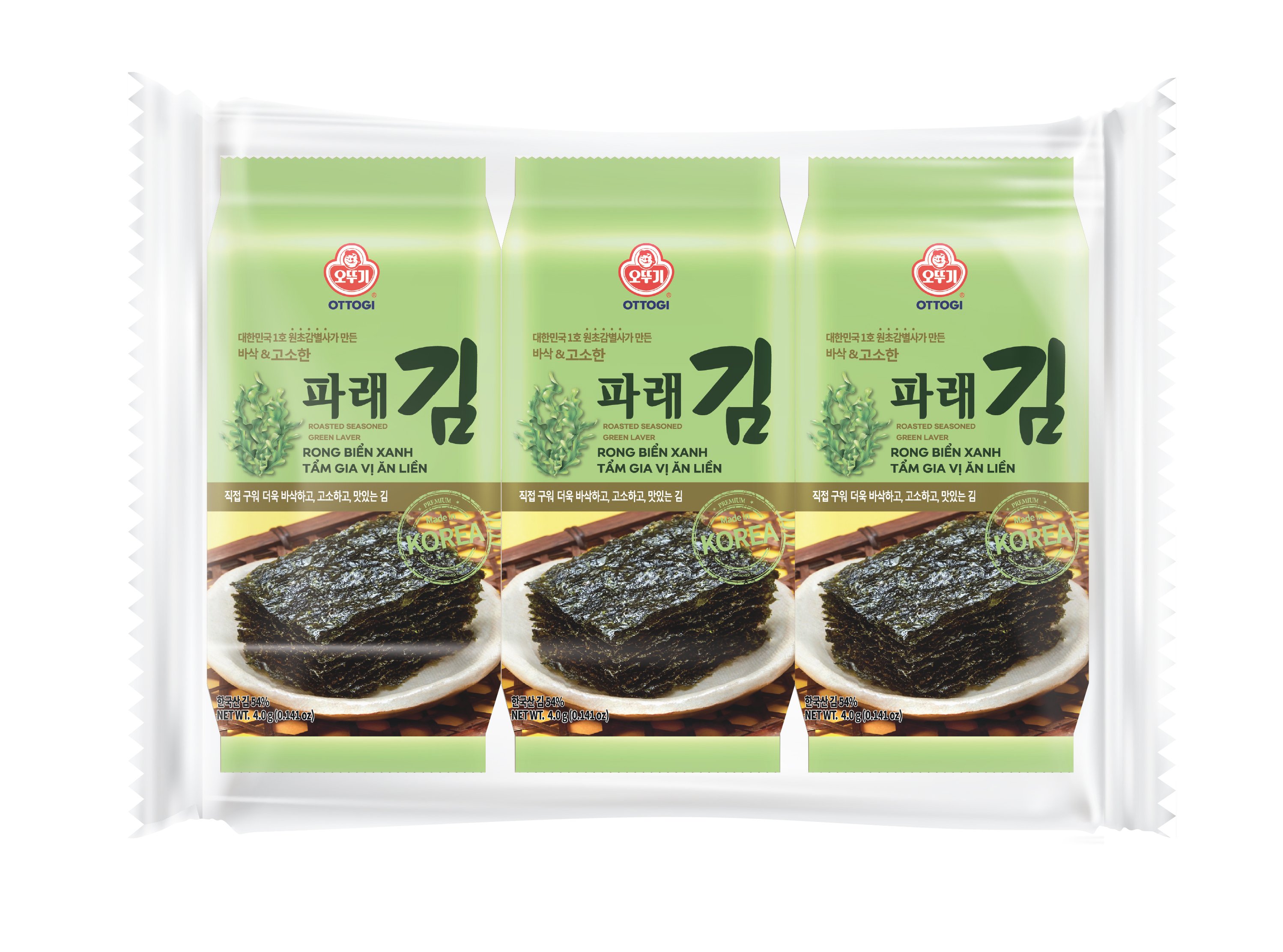 Mua tại TiktokRong biển xanh tẩm gia vị ăn liền Ottogi túi 4g x 3 gói