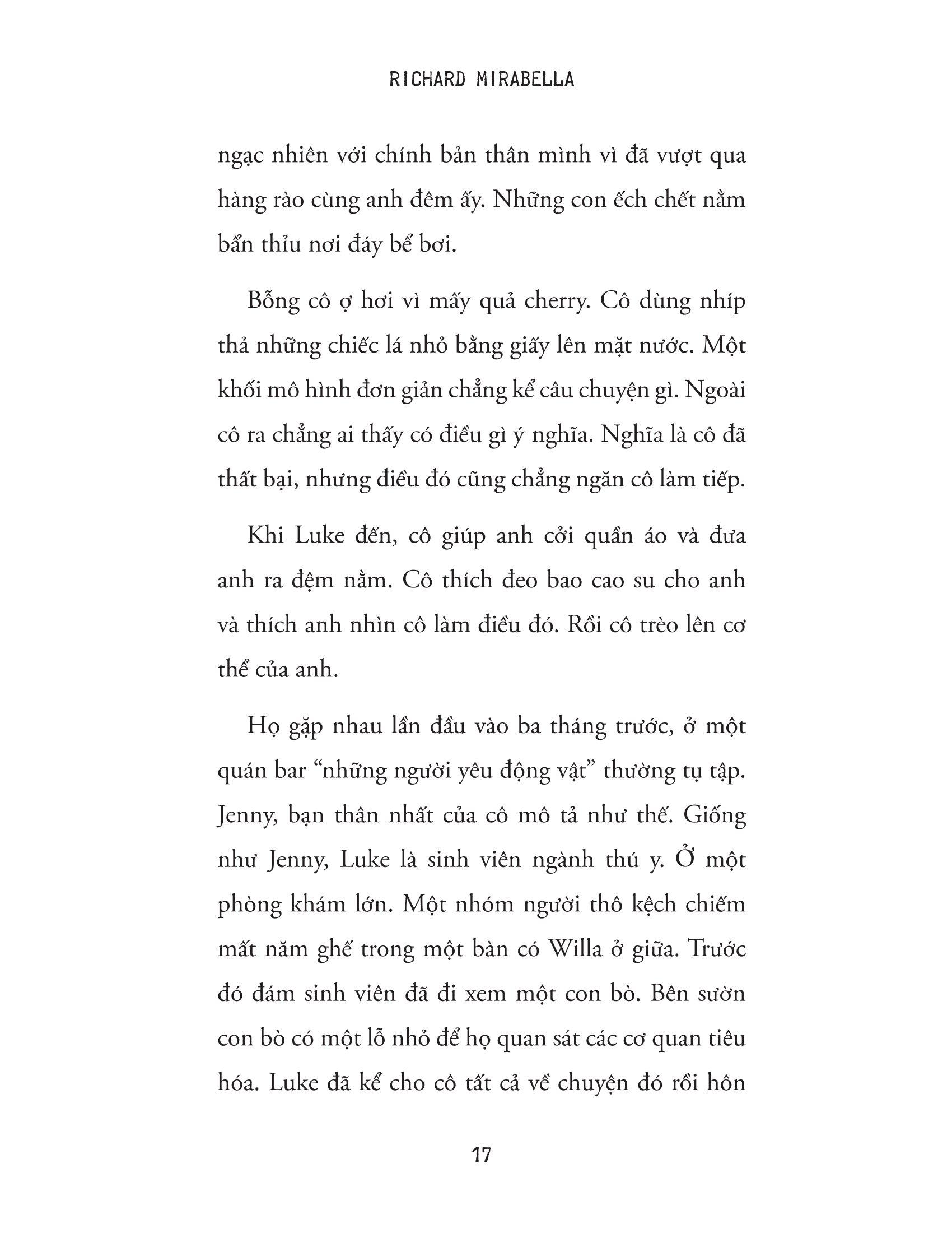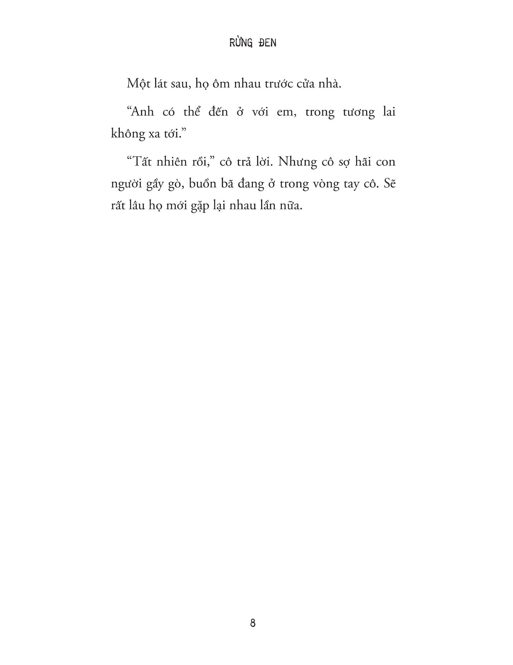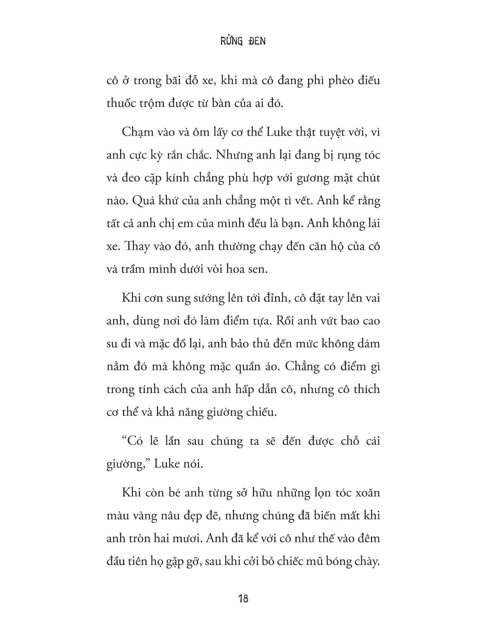Rừng Đen Sau nhiều năm cắt đứt liên lạc, Justin xuất hiện trước cửa nhà Willa, em gái m.ình và nói cần một nơi để ở. Willa, một cô gái ngăn nắp, cẩn thận, làm y tá và rảnh rỗi thì làm tranh tầm sâu. Mối quan hệ của Willa và Justin luôn căng thẳng nhưng đầy yêu thương. Và liệu mối quan hệ ấy sẽ rẽ đi đâu khi Justin mất kiểm soát, không thể tỉnh táo do những ảnh hưởng kéo dài của chấn thương sọ não do người bạn trai đồng giới gây ra từ nhiều năm về trước. Liệu sự trở về bên gia đình sau bao năm mất tích ấy của Justin, có mang lại cho anh hạnh phúc? Về tác giả: Richard Mirabella là một nhà văn kiêm công chức sống ở ngoại ô New York. Truyện ngắn của ông đã xuất hiện trên Story Magazine, American Short Fiction trực tuyến, One Story, Split Lip Magazine, và nhiều nơi khác. Một số lời đánh giá tích cực:
