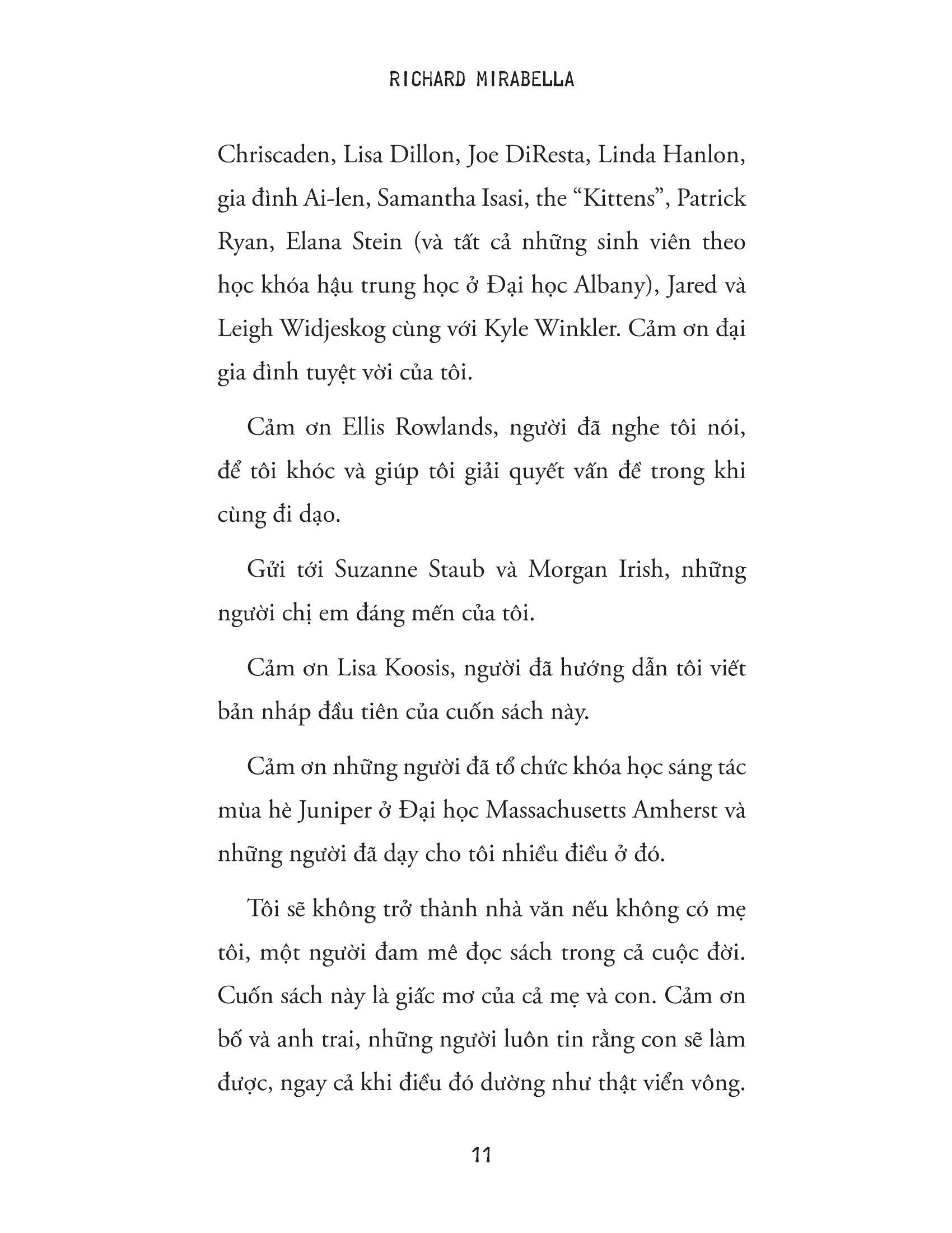 • “Cuốn tiểu thuyết đầu tay của Richard Mirabella là một cuốn tiểu thuyết kỳ lạ, chạm đến mọi ngõ ngách tâm lý ở mọi khía cạnh, nhưng khả năng diễn đạt cẩn thận, chân thực về mặt cảm xúc của Mirabella về mối quan hệ luôn thay đổi giữa anh trai Justin và em gái Willa, sẽ khiến độc giả không thể bỏ lỡ trang nào từ đầu đến cuối.” – Christopher Bollen, New York Times Review