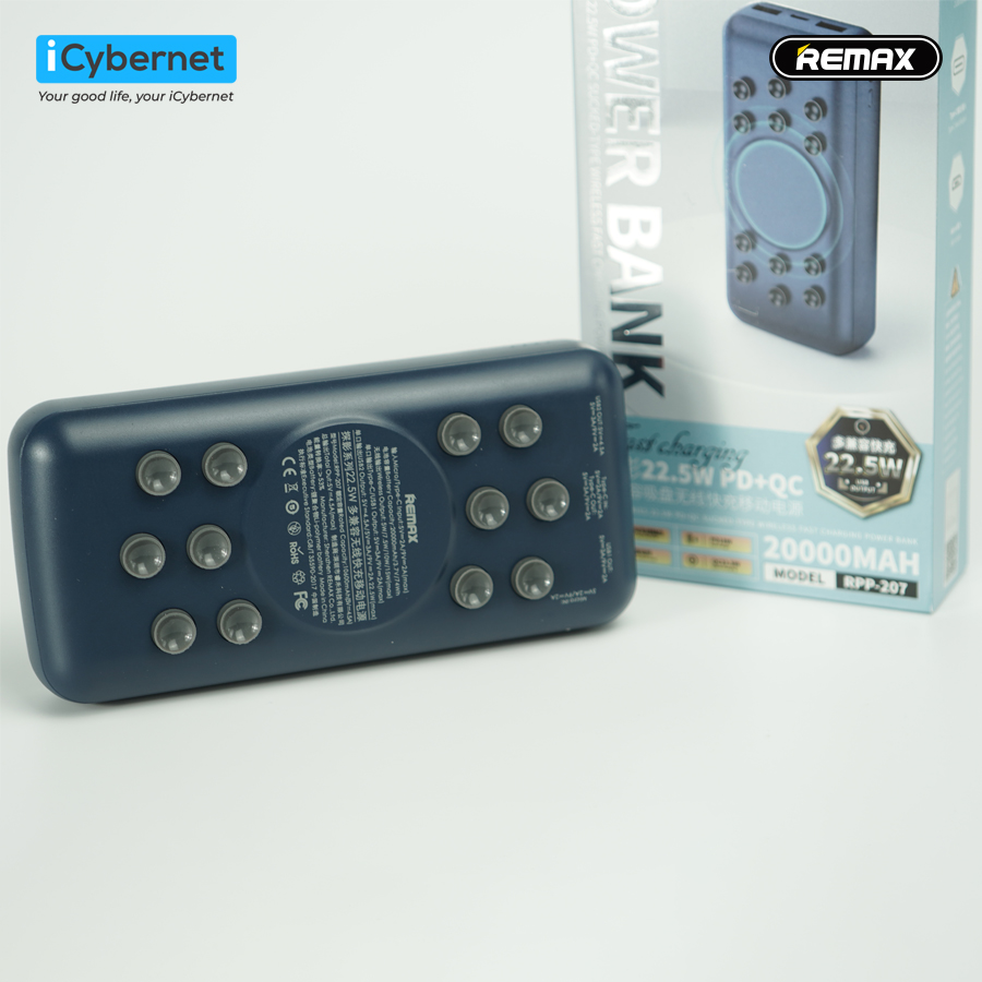 Mua tại Tiktok- Sạc dự phòng không dây 20000mAh Remax RPP-207 sạc nhanh không dây 15W, 3 cổng có dây 22.5W.