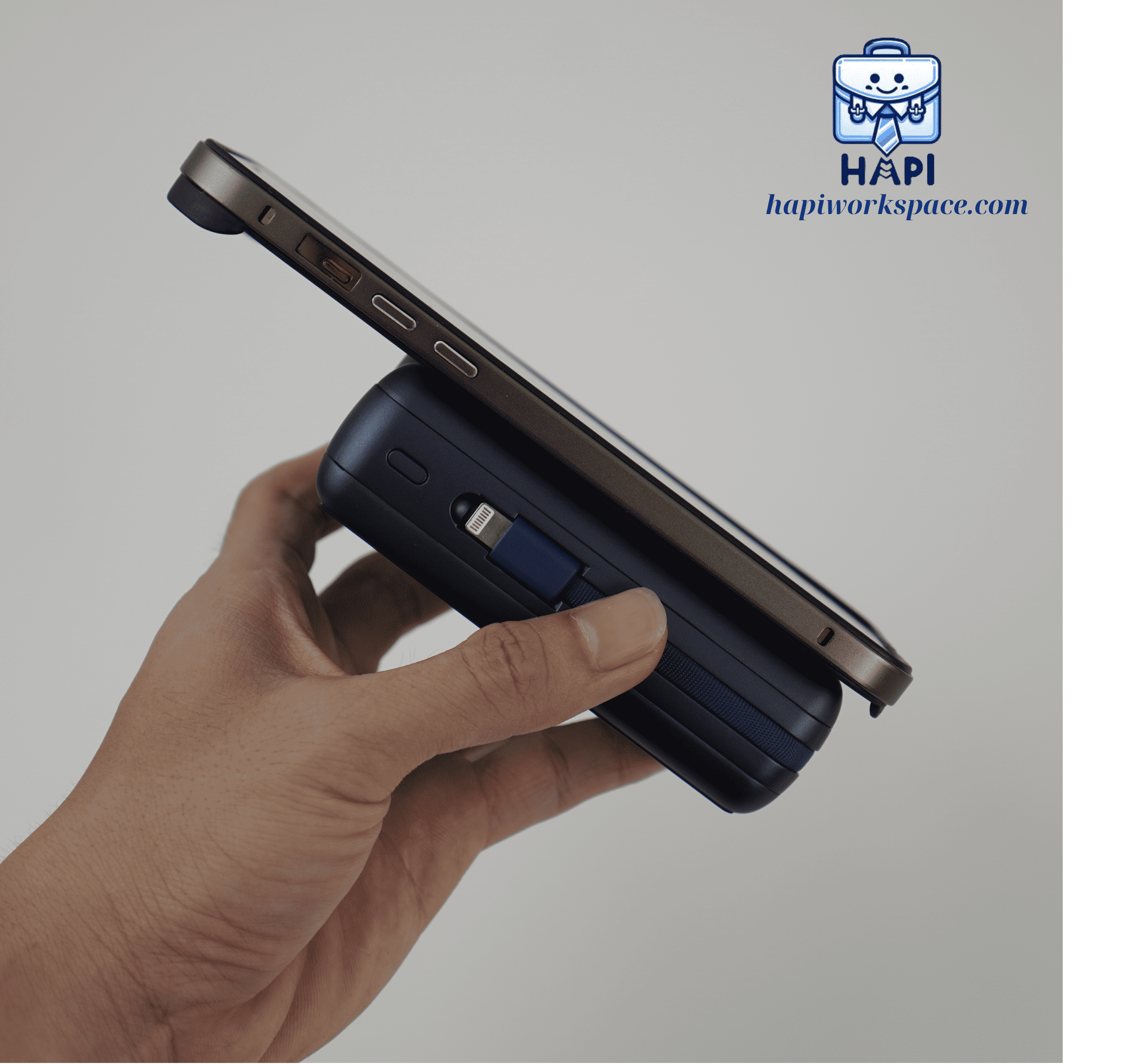 Loại sạc: Sạc dự phòng tích hợp cáp Type-C và L, sạc không dây từ tính