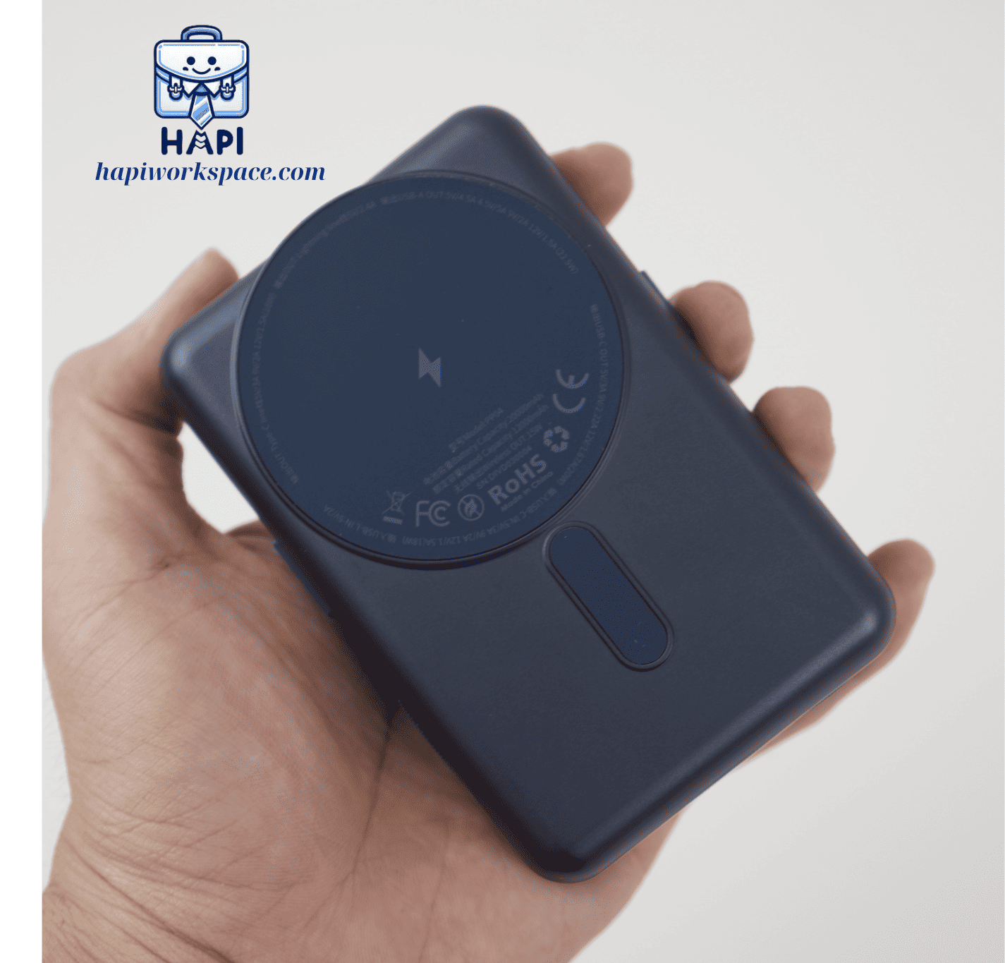 - Thiết kế nhỏ gọn kích thước 97 x 63 x 16 mm, trọng lượng 150g. - Sạc không dây từ tính tương thích với các thiết bị hỗ trợ sạc từ tính. - Dung