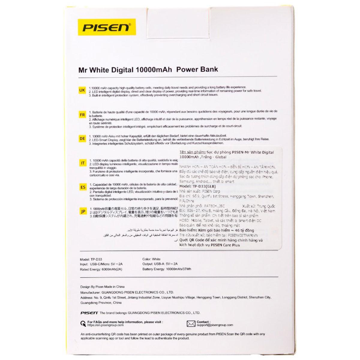 ✨Sạc Dự Phòng Pisen - Mr White Digital 10000mAh - Pisen TP-D33