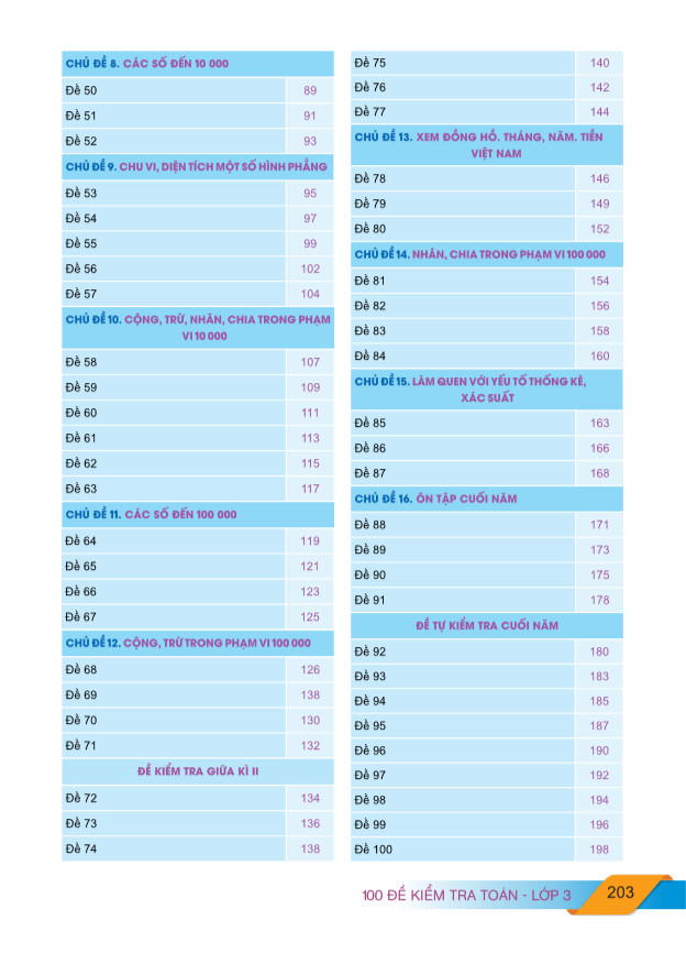 Bộ sách gồm 5 quyển, mỗi lớp 1 quyển. Các đề được biên soạn theo từng chủ đề để giúp học sinh hệ thống hóa kiến thức trong các bài ở mỗi chủ đề. Giữa kì và cuối kì đều có các đề ôn luyện, giúp các em có kiến thức vững vàng khi bước vào kì thi và đạt kết quả tốt. Mỗi đề gồm 6 đến 8 bài toán có nội dung bám sát từng chủ đề trong sách giáo khoa, với các mức độ từ dễ đến khó để kiểm tra, đánh giá được năng lực của học sinh. Giáo viên có thể dùng để cho học sinh làm bài tập trong buổi 2, cuối tuần hoặc dùng làm dễ ôn tập kiểm tra giữa kì, cuối kì.