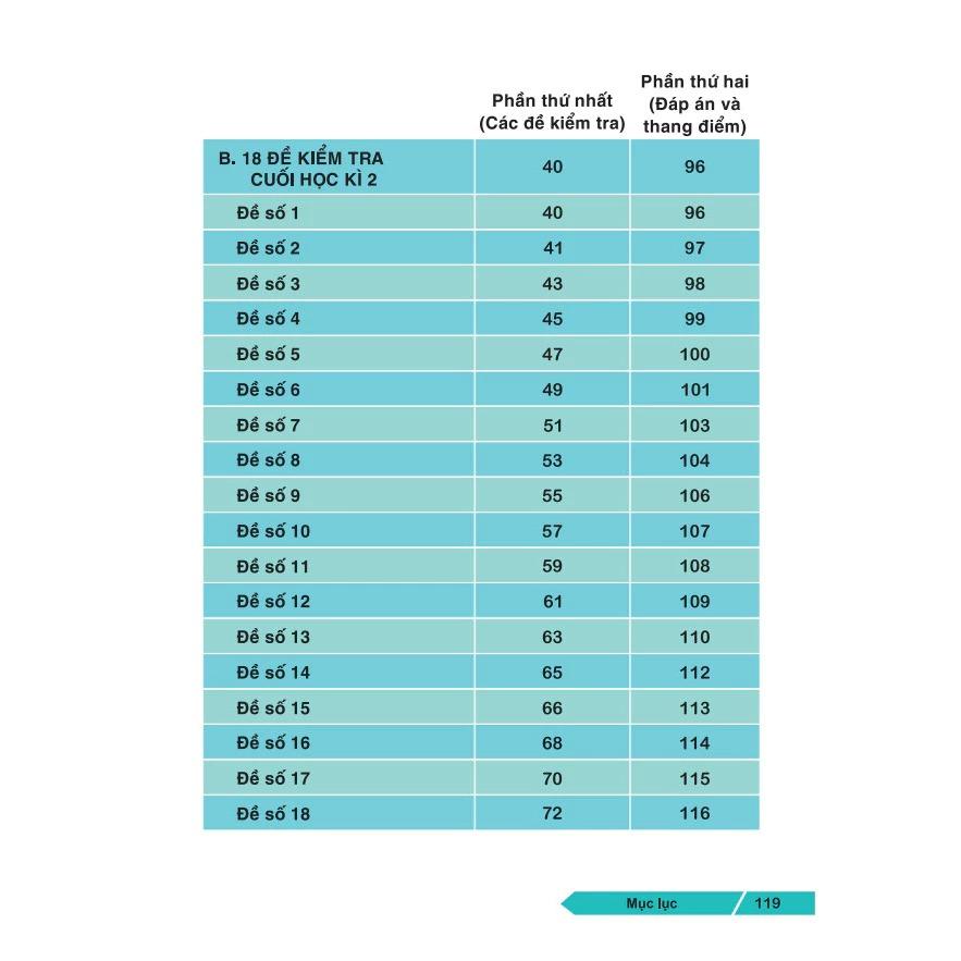 từ lớp 2 đến lớp 5. Mỗi lớp gồm 18 đề kiểm tra cuối học kì 1 và 18 để kiểm tra cuối học kì 2 theo Chương trình môn Toán trong Chương trình giáo dục phổ thông 2018.