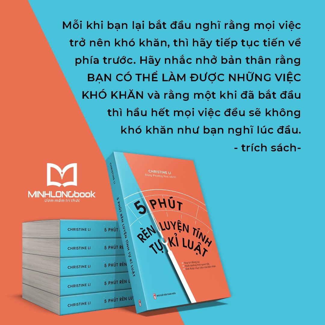 5 Phút rèn luyện tính tự kỉ luật là những bài tập thiết thực, bổ ích mà bạn chỉ cần vài phút để làm, nhưng lại tạo ra tác động cực kì to lớn, giúp bạn vượt qua thói quen trì hoãn, có kế hoạch hành động rõ ràng, khơi dậy những tiềm năng của bản thân để đạt được những mục tiêu đã đặt ra. Nghiêm túc rèn luyện tính tự kỉ luật mỗi ngày, bạn sẽ phải kinh ngạc vì sự thay đổi ngoạn mục của mình trong thời gian ngắn!