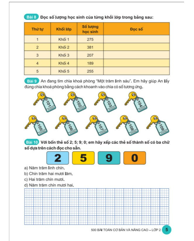 Bộ sách “500 bài toán cơ bản và nâng cao" gồm 5 cuốn được biên soạn dành cho các em học sinh tiểu học từ lớp 1 đến lớp 5. Đồng thời, bộ sách cũng