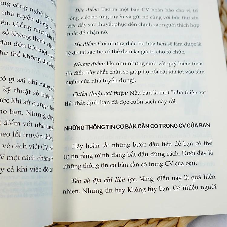 Không chỉ có vậy, bạn cũng sẽ biết được 5 sai lầm chính khiến CV của bạn bị từ chối và cùng với đó là những thứ bạn không nên đưa vào CV của mình. Tất cả những kiến thức trong sách đều là để giúp bạn có thể học cách tránh những lỗi sai kể trên, đồng thời biết cách khéo léo làm nổi bật những điểm mạnh của mình trong CV. Khi đọc các chương của cuốn sách, chắc chắn bạn sẽ bắt gặp một điều gì đó vô cùng mới mẻ mà trước đây bạn chưa từng nghĩ tới và sau đó, bạn có thể chọn làm theo những bài học phù hợp với nhu cầu của mình.