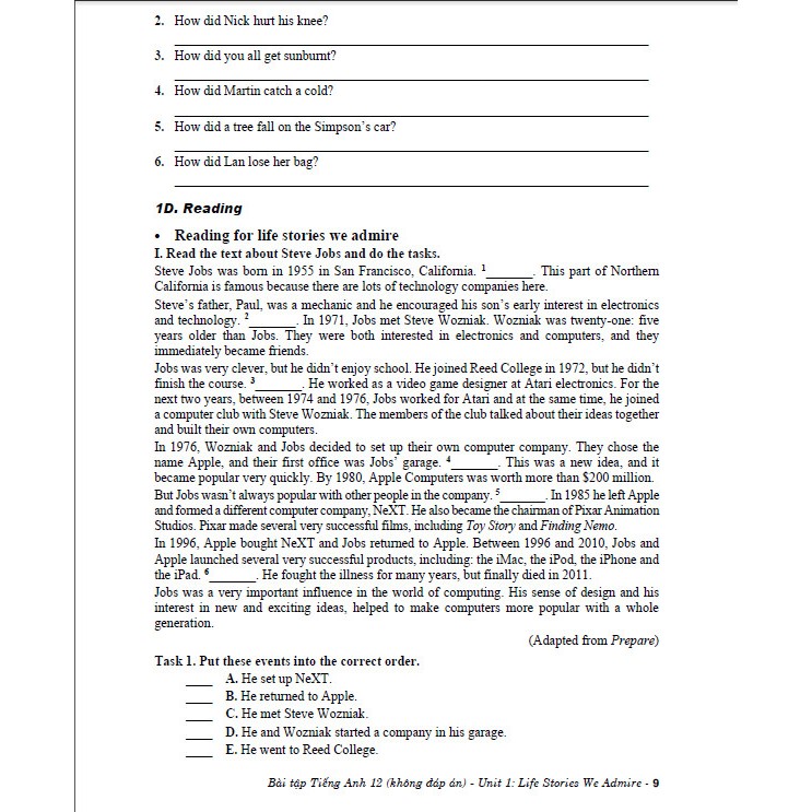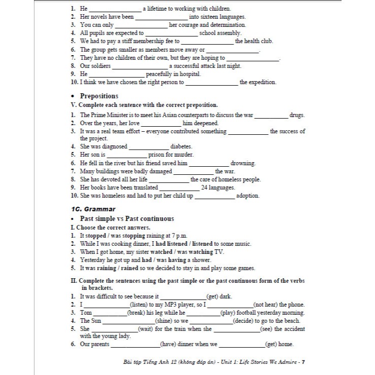 TIẾNG ANH 12 - UNIT 1 - LIFE STORIES WE ADMIRE ADMIRE- GLOBAL SUCCESS - GIẢI SÁCH BÀI TẬP - ĐÁP ÁN