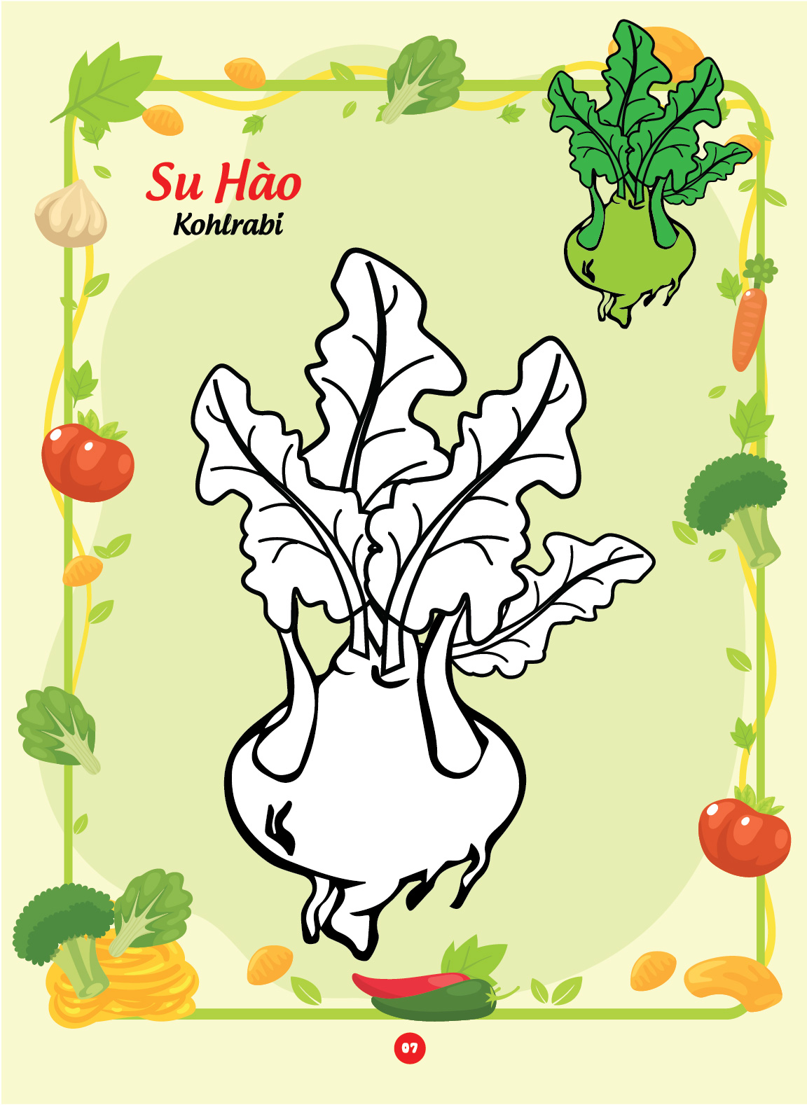 Sách tô màu "Bé tô màu và học tiếng Anh theo chủ đề - Các loại rau củ" là một tài liệu giáo dục thú vị và bổ ích dành cho trẻ em. Với những hình ảnh sinh động và dễ thương liên quan đến Các loại rau củ, cuốn sách không chỉ giúp trẻ em phát triển khả năng sáng tạo thông qua việc tô màu mà còn giúp các em làm quen với từ vựng tiếng Anh liên quan đến chủ đề này.