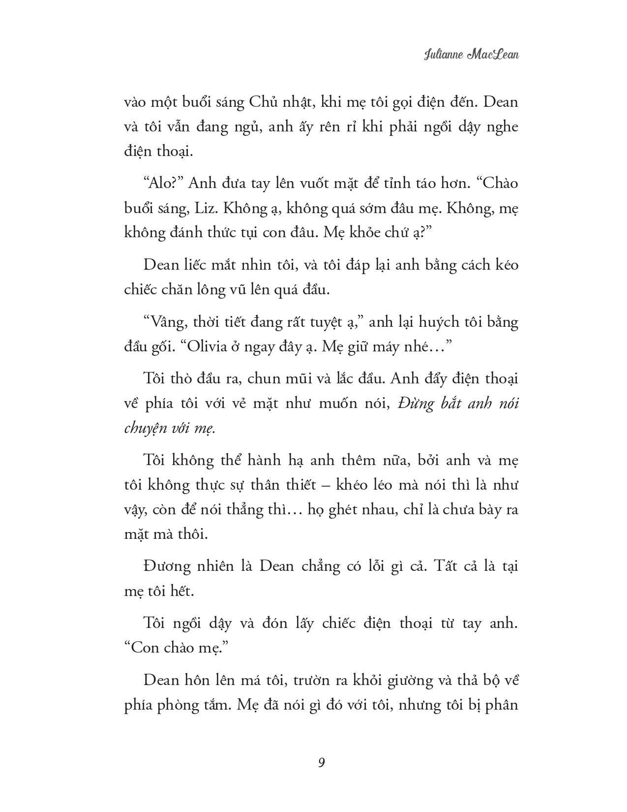 Tưởng chừng như cuộc đời của hai người phụ nữ này chẳng liên quan, nhưng họ lại bất ngờ giao nhau ở một điểm. Mối liên hệ kỳ lạ của hai người đã mở ra những bí mật có khả năng thay đổi mọi thứ mà Olivia nghĩ rằng cô ấy biết về cuộc hôn nhân, chồng cô ấy và quan trọng nhất là bản thân cô ấy.