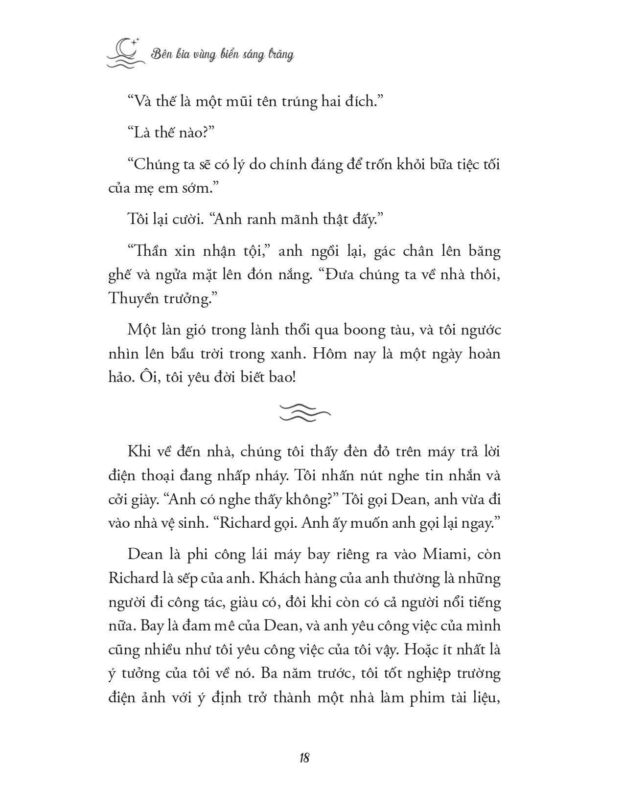 Với những khúc ngoặt đầy mê hoặc, Bên kia vùng biển sáng trăng là một cuốn tiểu thuyết sống động, giàu cảm xúc về sức mạnh lay động của tình yêu đánh mất rồi lại tìm thấy - và sức mạnh phi thường của một người phụ nữ đấu tranh cho hạnh phúc sau bi kịch.