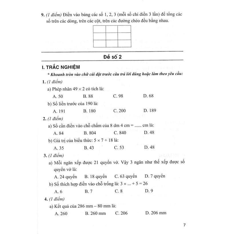 Phần A: ĐỀ KIỂM TRA MÔN TOÁN LỚP 3