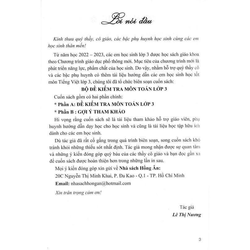 Từ năm học 2022 – 2023, các em học sinh lớp 3 được học sách giáo khoa theo Chương trình giáo dục phổ thông mới. Mục tiêu của chương trình mới là phát triển năng lực, phẩm chất của học sinh. Do vậy, nhằm hỗ trợ quý thầy cô và các bậc phụ huynh có thêm tài liệu hướng dẫn các em học sinh học tốt môn Tiếng Việt lớp 3, chúng tôi đã tổ chức biên soạn cuốn sách: Bộ Đề Kiểm Tra Môn Toán Lớp 3 (Dùng Kèm SGK Kết Nối)