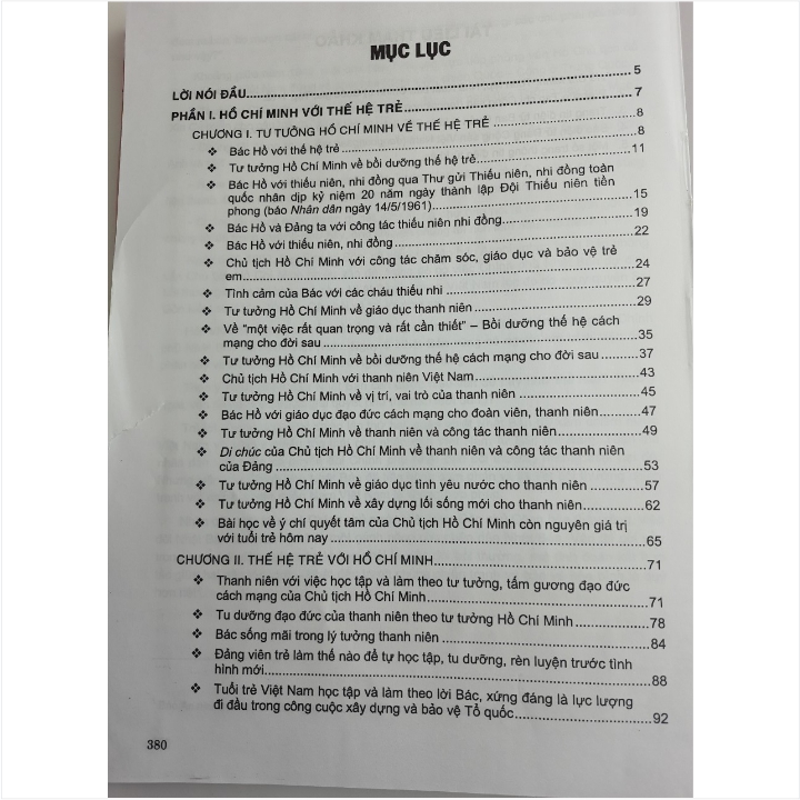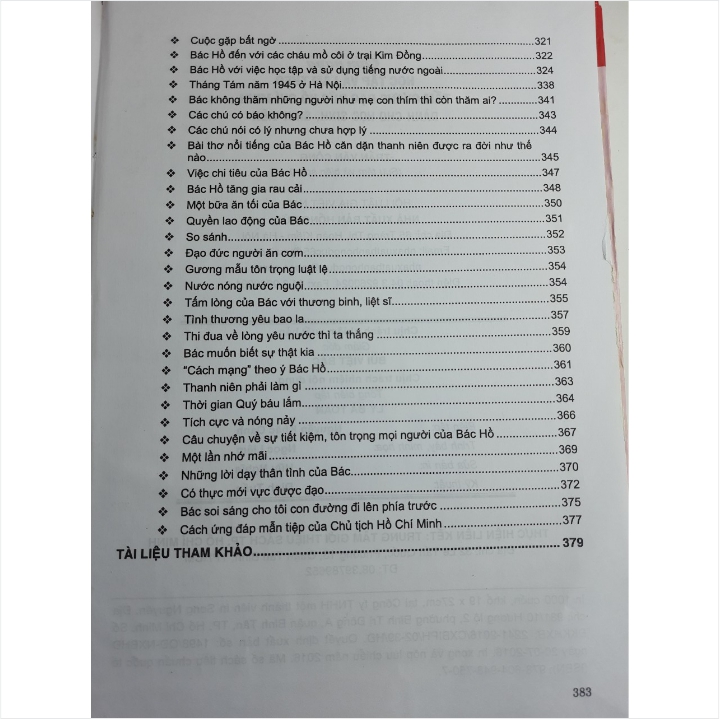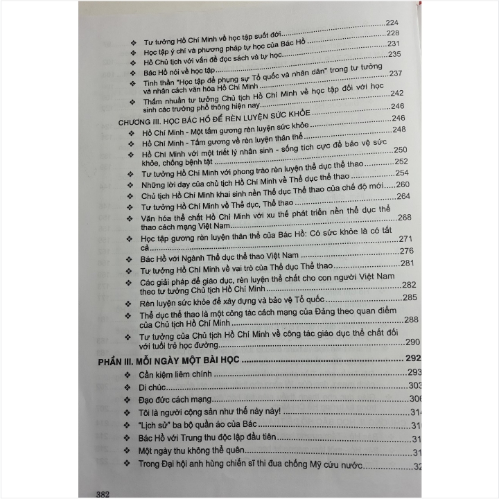 - Phần thứ ba. Mỗi ngày một bài học: Những bài học về tấm gương đạo đức Hồ Chí Minh giản dị mà vĩ đại qua cuộc đời hoạt động cách mạng cũng như cuộc sống đời thường của Người. Nội dung cuốn sách giúp học sinh sinh viên và cán bộ giảng dạy có điều kiện tìm hiểu một cách đầy đủ, toàn diện về cuộc đời và sự nghiệp Hồ Chí Minh, tư tưởng đạo đức của Người nói riêng cũng như tăng hiệu quả trong việc học tập và làm theo tấm gương đạo đức Hồ Chí Minh .../... Cảm ơn các bạn đã ghé thăm shop Nhà sách Nam Việt rất nhiều ạ! Cẩm Nang Học Tập Và Làm Theo Tấm Gương Đạo Đức Hồ Chí Minh Dành Cho Học Sinh, Sinh Viên Cẩm Nang Học Tập Và Làm Theo Tấm Gương Đạo Đức Hồ Chí Minh Dành Cho Học Sinh, Sinh Viên