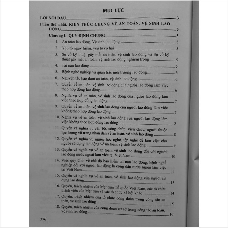 - Toàn bộ sách bìa mềm khổ lớn 19 x 27 cm phân phối bởi Nhà sách Nam Việt đều được bọc sách Plastic MIỄN PHÍ và xuất hóa đơn điện tử đầy đủ, nhanh chóng. …/… Lời giới thiệu: Đất nước ta ngày càng đổi mới phát triển, các nhà máy, xí nghiệp sản xuất, các công trình xây dựng, thủy lợi, giao thô phát triển nhanh chóng, trong đó phải sử dụng rất nhiều loại máy móc, thiết bị, phương tiện vận hành. Nhiều loại hình công việc thường xuyên phải đối mặt với tai nạn, chấn thương khác nhau xảy ra liên tiếp, phát sinh và gây ra các bệnh nghề nghiệp. Để kiểm soát tai nạn lao động, bệnh nghề nghiệp; bảo vệ nguồn nhân lực là tài sản giá trị nhất của mỗi doanh nghiệp, mỗi quốc gia, hướng tới một nền sản xuất an toàn, có năng suất cao, thực hiện tốt trách nhiệm xã hội. Để có các tài liệu nghiên cứu áp dụng các quy định của nhà nước trong bảo vệ an toàn vệ sinh, lao động của đơn vị, doanh nghiệp mình. Nhà sách Nam Việt xin trân trọng giới thiệu cuốn sách: Cẩm Nang Hướng Dẫn Áp Dụng An Toàn, Vệ Sinh Lao Động Trong Các Cơ Quan, Doanh Nghiệp …/… Nội dung sách gồm 6 phần sau: Phần thứ nhất. KIẾN THỨC CHUNG VỀ AN TOÀN, VỆ SINH LAO ĐỘNG Phần thứ hai. HỎI ĐÁP VỀ XỬ PHẠT VI PHẠM HÀNH CHÍNH TRONG LĨNH VỰC LAO ĐỘNG, BẢO HIỂM XÃ HỘI, NGƯỜI LAO ĐỘNG VIỆT NAM ĐI LÀM VIỆC Ở NƯỚC NGOÀI THEO HỢP ĐỒNG Phần thứ ba. HOẠT ĐỘNG KIỂM ĐỊNH KỸ THUẬT AN TOÀN, HUẤN LUYỆN AN TOÀN, VỆ SINH LAO ĐỘNG VÀ QUAN TRẮC MÔI TRƯỜNG LAO ĐỘNG Phần thứ tư. QUY ĐỊNH CHI TIẾT VÀ HƯỚNG DẪN VỀ TUYỂN DỤNG LAO ĐỘNG, QUẢN LÝ LAO ĐỘNG VÀ HỢP ĐỒNG LAO ĐỘNG Phần thứ năm. QUY ĐỊNH CHI TIẾT VÀ HƯỚNG DẪN VỀ TIỀN LƯƠNG, THỜI GIỜ LÀM VIỆC, NGHỈ NGƠI Phần thứ sáu. NHỮNG QUY ĐỊNH CHUNG VỀ GIẢI QUYẾT TRANH CHẤP LAO ĐỘNG Cảm ơn các bạn đã ghé thăm shop Nhà sách Nam Việt ! Sách Cẩm Nang Hướng Dẫn Áp Dụng An Toàn Vệ Sinh Lao Động Trong Các Cơ Quan, Doanh Nghiệp Sách Cẩm Nang Hướng Dẫn Áp Dụng An Toàn Vệ Sinh Lao Động Trong Các Cơ Quan, Doanh Nghiệp