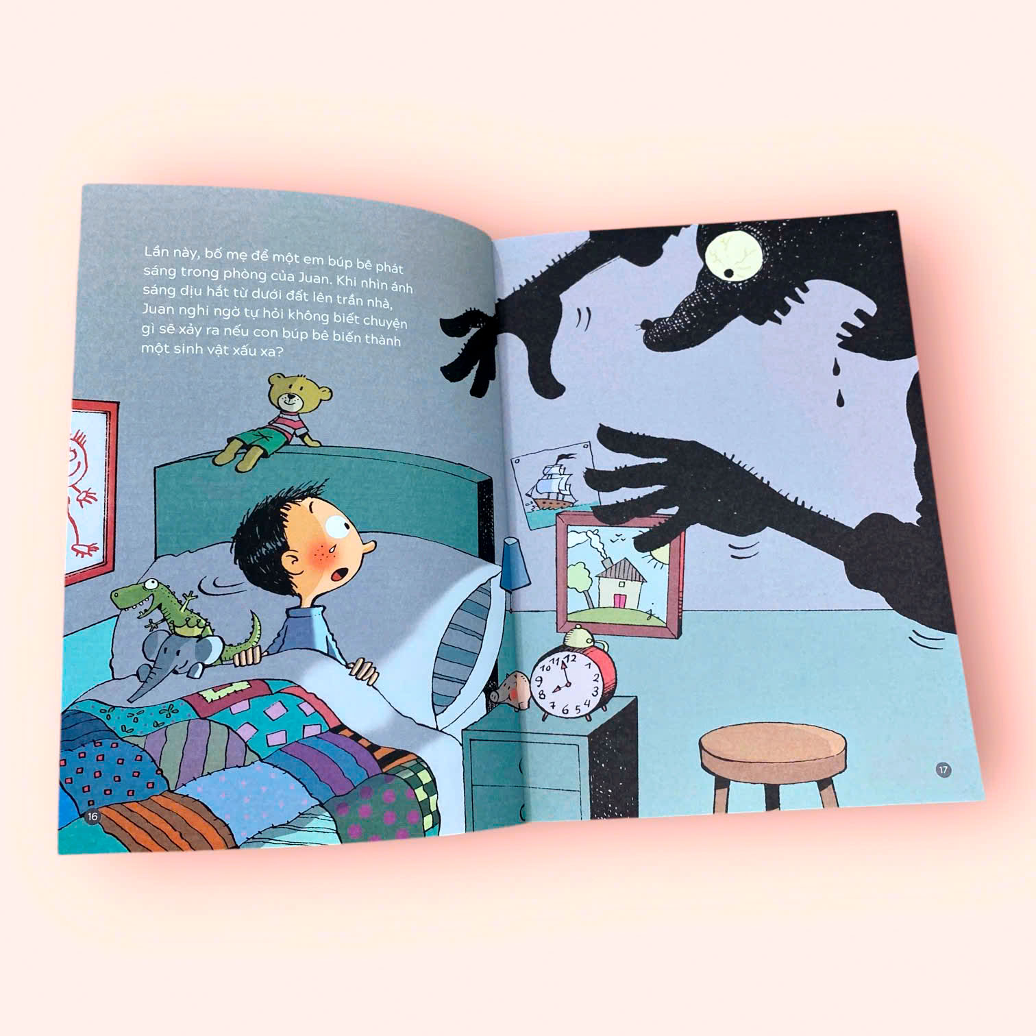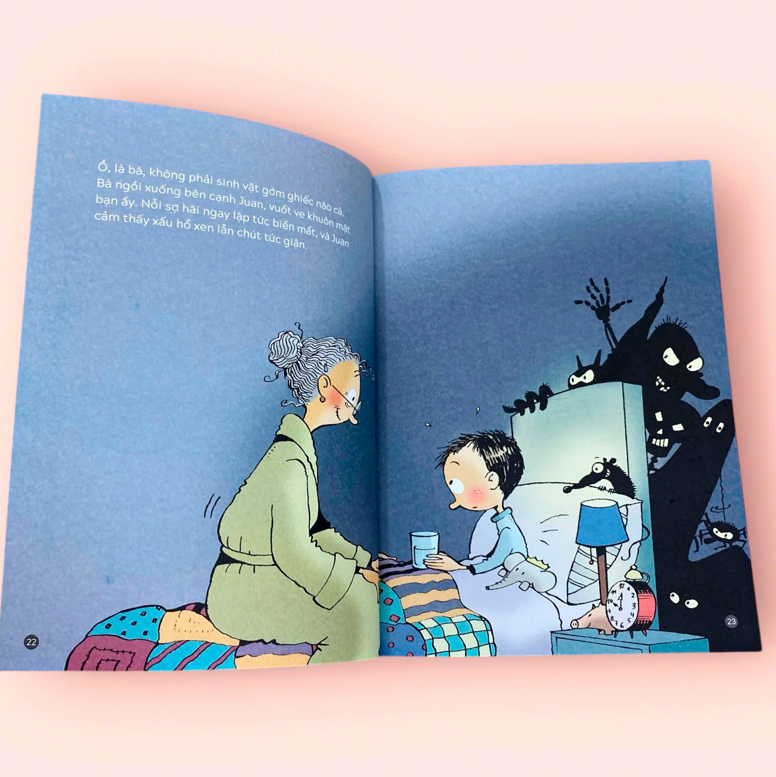 ÁC MỘNG HÃY MAU CÚT ĐI! - Một câu chuyện giúp trẻ vượt qua nỗi sợ bóng tối. Juan là một cậu bé ngoan ngoãn, hay cười và luôn vui vẻ cả ngày, nhưng khi màn đêm buông xuống cậu ấy lại có rất nhiều nỗi sợ hãi. Mỗi khi lên giường đi ngủ nỗi sợ của Juan lớn dần lên, cậu ấy nhìn thấy những bóng đen đầy đe dạo và những sinh vật kinh dị, đáng sợ luôn ẩn nấp xung quanh, chúng chỉ biến mất khi ánh đèn của căn phòng sáng lên. Làm sao để Juan không còn ám ảnh mỗi tối khi lên giường đi ngủ đây? Chính Bà của Juan đã dạy cậu ấy cách vượt qua nỗi sợ hãi. Ai nói rằng bóng tối không thú vị chứ?