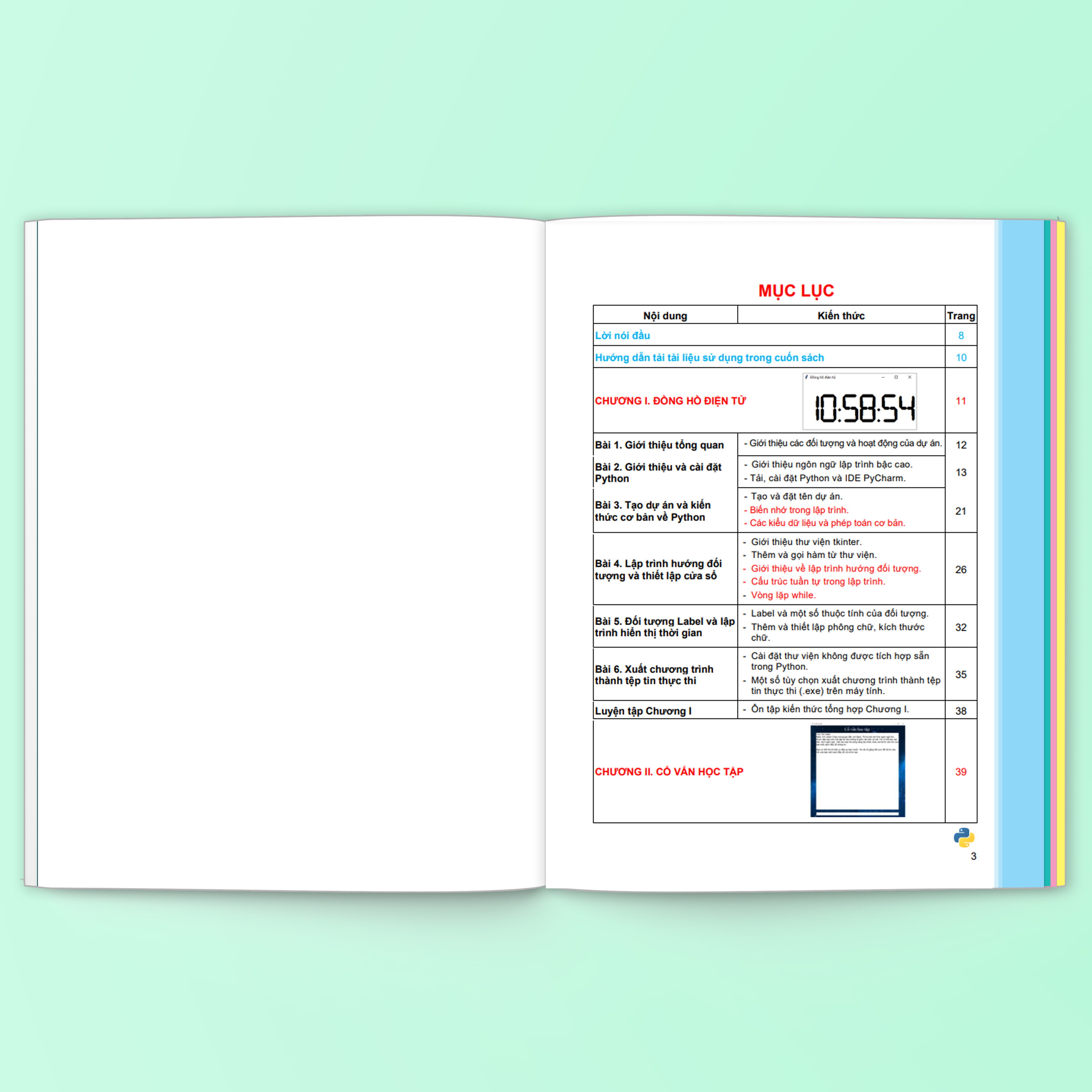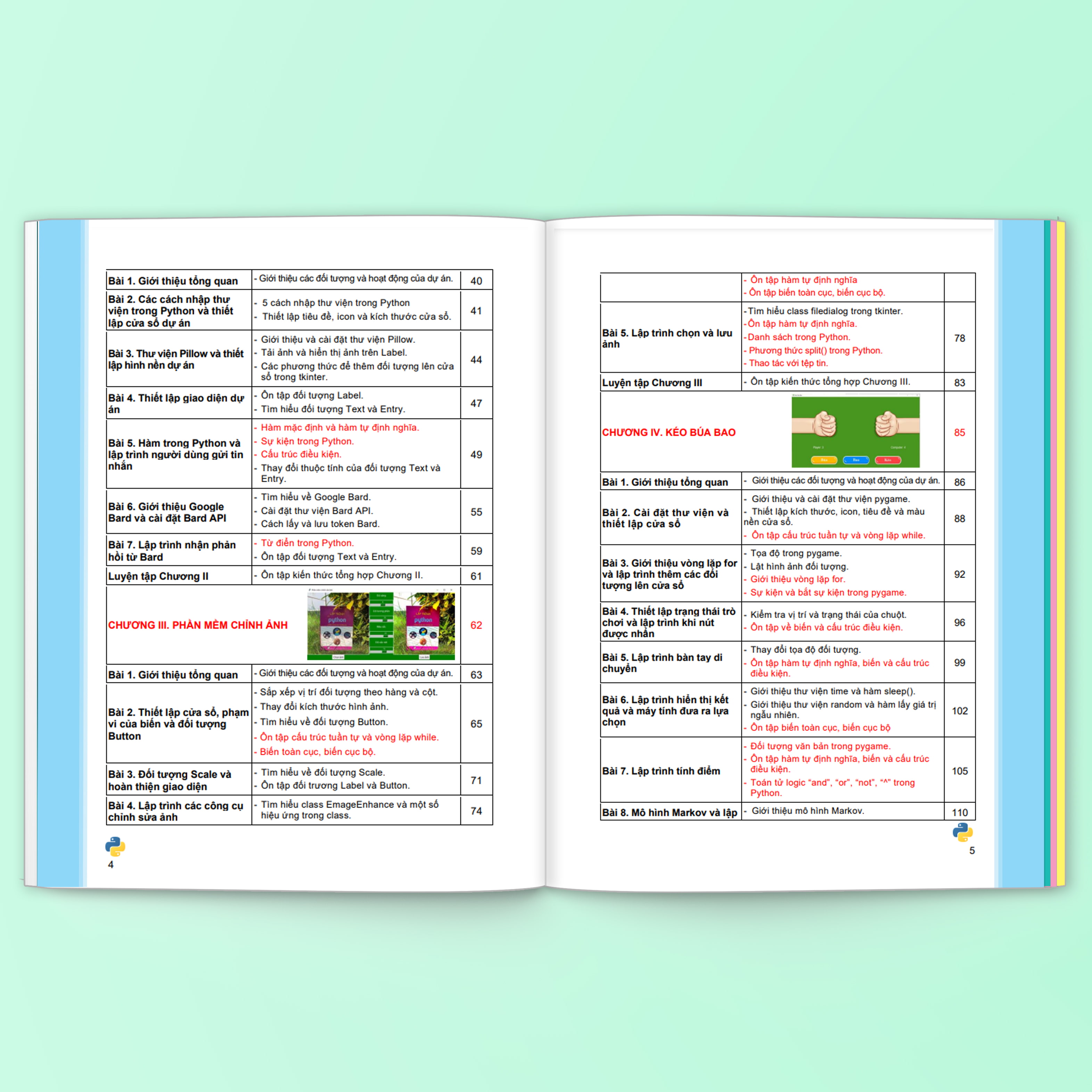 Cuốn sách Coding 8 lập trình với Python bao gồm 05 chương giúp các bạn làm chủ các kiến thức từ cơ bản đến nâng cao về lập trình như sau: