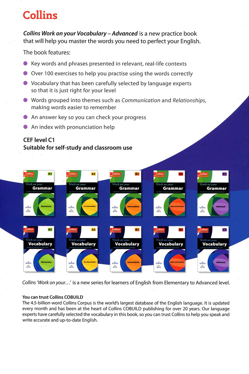 Collins Work On Your Vocabulary - Advanced C1 Hundreds of words to learn and rememberCollins Work On Your Vocabulary - Advanced C1 is a new practice book that covers the key vocabulary needed by learners