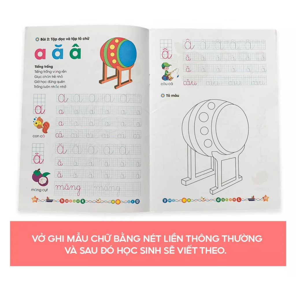Mua tại Tiktok- ̂ ̂́ Nhà xuất bản: Nhà xuất bản Hà Nội Nhà phát hành: Công Ty TNHH MTV Sách & TBGD Việt Hà Năm xuất bản: 2020 Số trang: 16 trang / quyển GIỚI THIỆU SÁCH Sách - Chuẩn Bị Cho Bé Vào Lớp 1 Các bé chuẩn bị vào lớp 1 đang trong quá trình tập viết chữ, viết số hoặc viết chính tả. Thời gian đầu, bố mẹ thường mua cho các em những vở có sẵn mẫu chữ, kiểu chữ. Vở luyện viết chữ đẹp cho học sinh có sẵn mẫu chữ sẽ tạo thói quen bắt chước cho các bé khi mới tập viết. Vở được viết sẵn các mẫu chữ bằng nét đứt. Học sinh có thể tô vào thành nét chữ liền và hoàn chỉnh chữ cái. Hoặc cũng có những vở ghi mẫu chữ bằng nét liền thông thường và sau đó học sinh sẽ viết theo. Các mẫu chữ trong vở viết chữ cho học sinh thường là những mẫu chữ chuẩn. Túi sách Chuẩn bị cho bé vào lớp 1 gồm 8 cuốn tô số, tô chữ, tập viết các nét cơ bản, làm quen với toán học trang bị hành trang cho bé vào lớp 1