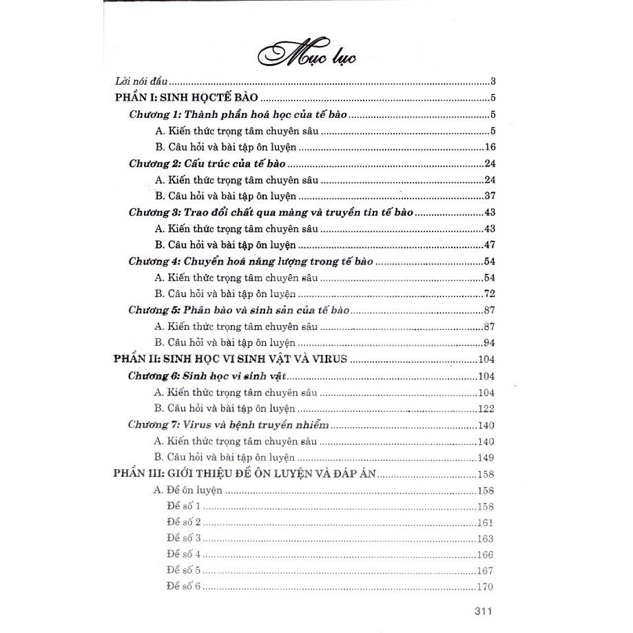 - Bồi Dưỡng Học Sinh Giỏi Sinh Học 10 Cuốn sách được viết bám sát chương trình Sinh học lớp 10 phổ thông và chương trình sinh học lớp 10. Cuốn sách được trình bày thành 3 phần: • Phần I: Sinh học tế bào. Gồm 4 chương Thành phần hóa học của tế bào, cấu trúc của tế bào, chuyển hóa vật chất và năng lượng trong tế bào, chu kì tế bào và sinh sản của tế bào. • Phần II: Sinh học vi sinh vật. Gồm 3 chương Chuyển hóa vật chất và năng lượng ở vi sinh vật, sinh trưởng và phát triển ở vi sinh vật, virus và bệnh truyền nhiễm. • Phần III: Giới thiệu 10 đề thi và đáp án chi tiết.
