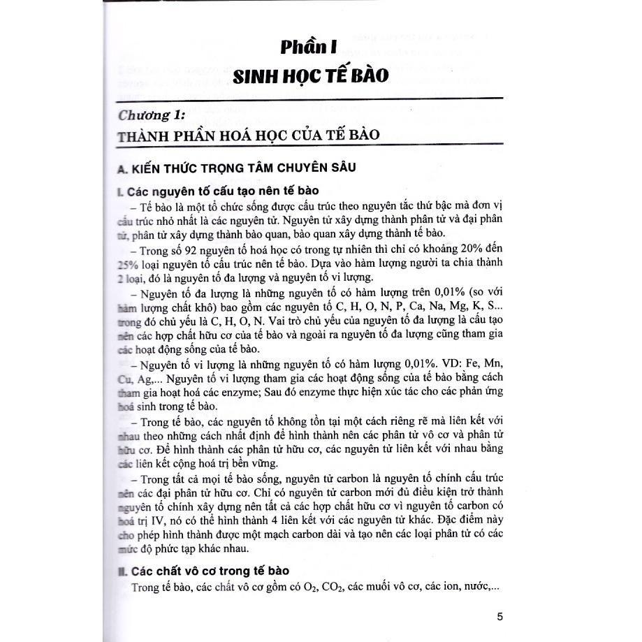 - Bồi Dưỡng Học Sinh Giỏi Sinh Học 12 Cuốn sách bao gồm : • Câu hỏi lí thuyết: Tóm tắt lí thuyết cơ bản và nâng cao bằng những câu hỏi phát triển, mang tính tổng hợp. • Các dạng bài tập: Phương pháp giải cho các dạng bài tập, sau đó vận dụng để giải các bài tập điển hình của từng dạng, cuối cùng là các câu hỏi trắc nghiệm , dùng để ôn tập, tự kiểm tra và đánh giá trình độ tiếp thu của mình. 4.Các Chuyên Đề Bám Sát Đề Thi THPT Quốc Gia Môn Sinh Học Nhà xuất bản: Nhà xuất bản Đại Học Quốc Gia Hà Nội Nhà phát hành: Nhà sách hồng ân Năm xuất bản: 2020 Số trang: 454 Tác giả: Khắc Nghệ Bạn đọc thân mến! Bộ Giáo dục và Đào tạo đang có lộ trình hướng tới một kì thi quốc gia chuẩn mực “2 trong 1” để vừa xét tốt nghiệp THPT vừa xét đầu vào cho các trường Đại học và Cao đẳng cũng như khuyến khích các trường tự chủ trong công tác tuyển sinh. Vào đại học là một việc có nhiều ý nghĩa đối với mỗi một học sinh. Một kết quả tốt trong kì thi này không những mở ra cánh cửa rộng lớn để xây dựng tương lai tươi sáng cho bản thân các em mà còn là thước đo năng lực trí tuệ, thái độ trong học tập của các em nữa. Kết quả tốt trong kì thi này còn thể hiện phần nào sự báo đáp, tri ân của các em dành cho cha mẹ, người thân và thầy cô. CÁC CHUYÊN ĐỀ BÁM SÁT ĐỀ THI TỐT NGHIỆP THPT QUỐC GIA (2 TRONG 1) MÔN SINH HỌC là cuốn tài liệu phục vụ công tác ôn tập luyện thi Đại học cho các em học sinh. Cuốn sách này chủ yếu giới thiệu các dạng câu hỏi và bài tập bám sát nội dung chương trình thi tuyển sinh Đại học, Cao đẳng. Sách được trình bày theo các chuyên đề ôn thi, mỗi chuyên đề có 3 phần: – Phần 1: Tóm tắt nội dung lí thuyết trọng tâm của chương trình ôn thi Đại học. Phần này viết khái quát, cô đọng những nội dung kiến thức có trong SGK Sinh học 12 nhằm cung cấp những kiến thức trọng tâm nhất giúp học sinh dễ dàng ôn tập, vận dụng. – Phần 2: Câu hỏi khái quát. – Phần 3: Câu hỏi rèn luyện. Ở phần 3 giới thiệu các câu hỏi, bài tập do tác giả tự biên soạn và những câu hỏi, bài tập được trích từ đề thi tuyển sinh Đại học từ năm 2011 đến nay. Các câu hỏi, bài tập có lời giải, đáp án để bạn đọc đối chiếu kết quả. Mặc dù hết sức cố gắng và tâm huyết để có cuốn sách giá trị, song trong quá trình biên soạn không thể tránh khỏi những thiếu sót nhất định, rất mong bạn đọc gần xa góp ý để cuốn sách được hoàn thiện trong lần tái bản sau. Tác giả hi vọng rằng cuốn sách sẽ là tài liệu cần thiết giúp các em chuẩn bị tốt cho kì thi tốt nghiệp THPT Quốc gia. Cuối cùng, tác giả chúc các bạn học sinh thi đạt điểm cao. Các cuốn sách tham khảo trên cũng là tài liệu sử dụng cho các giáo viên sinh học THPT, giáo viên dạy chuyên sinh thuộc các trường chuyên trong cả nước. Công ty phát hành Nhà Sách Hồng Ân 2 Năm Xuất Bản 2023 Năm Xuất Bản 2024