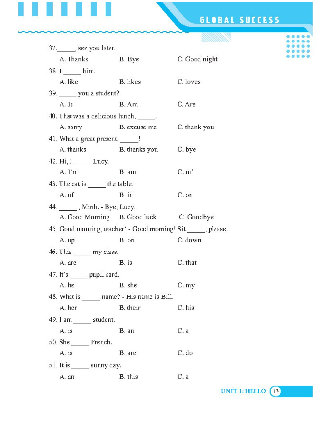 • Hệ thống bài tập khai thác sâu từ vựng, ngữ pháp từng đơn vị bài học   ★ Biên soạn theo sách giáo khoa Tiếng Anh GLOBAL SUCCESS
