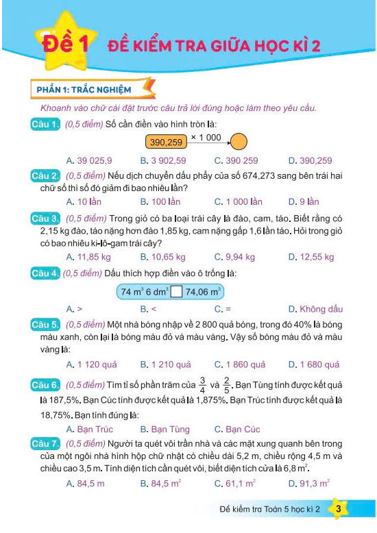 Đề Kiểm Tra Toán 5 Bộ Sách Kết Nối Tri Thức Với Cuộc Sống được biên soạn theo chương trình giáo dục phổ thông mới Bộ sách này được thiết kế phù hợp với