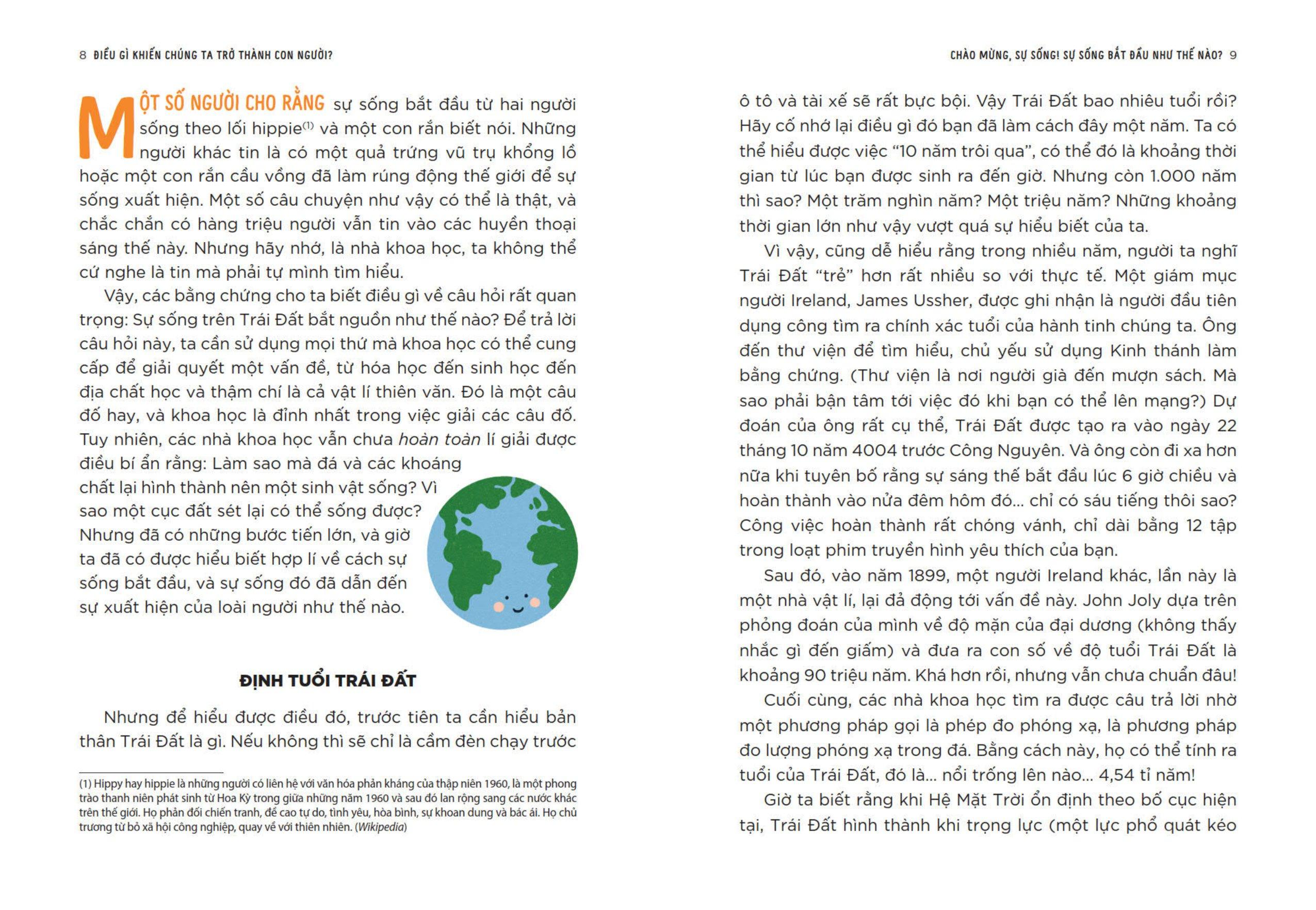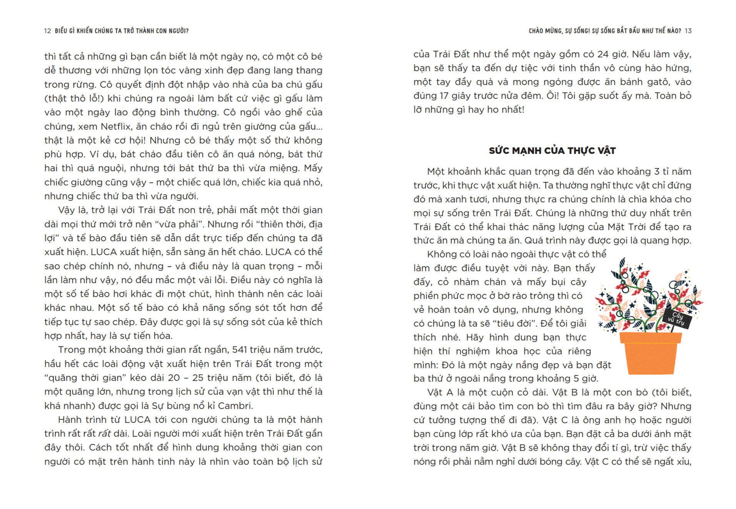 Điều Gì Khiến Chúng Ta Trở Thành Con Người? Nếu một người ngoài hành tinh đến Trái Đất, quan sát con người rồi so sánh với các dạng sống khác trên Trái Đất, ắt hẳn họ sẽ nhận ra những điều rất thú vị. Ví dụ, con người đi thẳng, mặc quần áo, nấu ăn, cười đùa và pha trò, chơi nhạc, chế tạo máy móc và suy nghĩ về những câu hỏi sâu sắc như: “Làm sao mà ta được như bây giờ?” Vậy điều gì khiến con người trở thành một loài khác biệt và độc nhất như vậy, và đâu là điểm chung giữa bạn với 7,75 tỉ người khác trên hành tinh này? Hành trình kì diệu với vô vàn bước ngoặt bất ngờ của sự sống đã được nhà miễn dịch học nổi tiếng Luke O’Neill hé lộ trong Điều Gì Khiến Chúng Ta Trở Thành Con Người? Cuốn sách sẽ dẫn bạn đọc tìm hiểu từ khởi nguyên của sự sống, khi tế bào đầu tiên xuất hiện trên Trái Đất khoảng 4 tỉ năm trước, cho đến thời điểm loài Homo sapiens sapiens, có nghĩa là “con người thông minh thông minh”, xuất hiện. Xem xét tất tần tật mọi điều xoay quay con người dưới góc nhìn khoa học, Điều Gì Khiến Chúng Ta Trở Thành Con Người? mang đến lời giải đáp đáng tin cậy và cụ thể về tình yêu, khiếu hài hước, khả năng cảm thụ âm nhạc, hay đủ mọi chuyện liên quan đến đồng hồ sinh học và nhịp sống của bạn, lí do bạn cảm thấy buồn ngủ hoặc đói, điều gì sẽ xảy ra khi bạn già đi, và cơ thể sẽ biến đổi thế nào sau khi bạn “nhắm mắt xuôi tay”… Hãy bắt đầu chuyến du hành khoa học khám phá sự sống qua mỗi trang sách ngay thôi nào!!