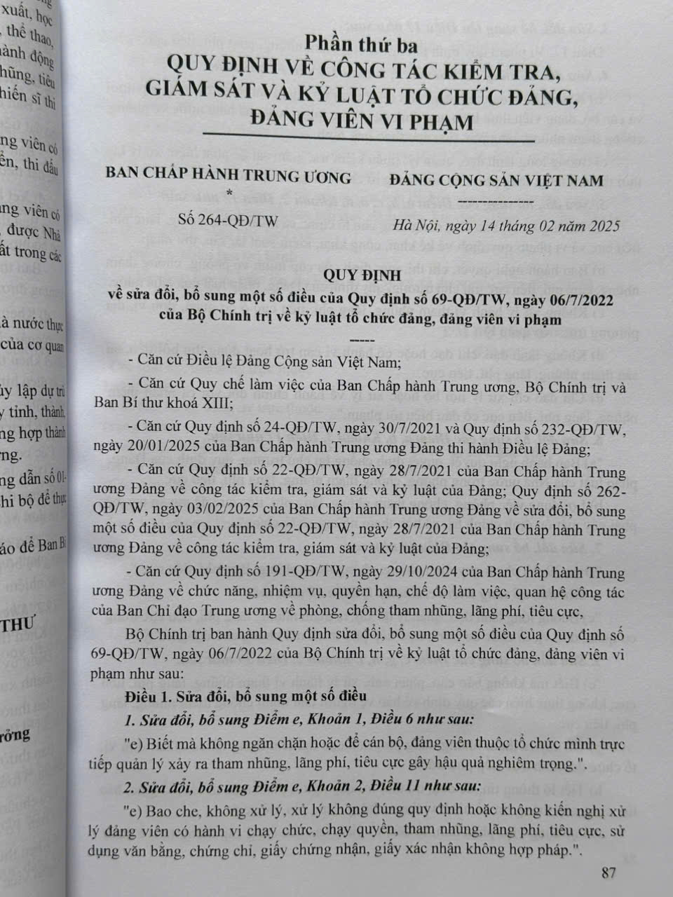 Phần thứ ba. QUY ĐỊNH VỀ CÔNG TÁC KIỂM TRA, GIÁM SÁT VÀ KỶ LUẬT TỔ CHỨC ĐẢNG, ĐẢNG VIÊN VI PHẠM