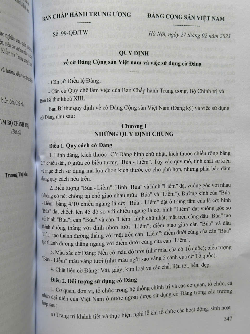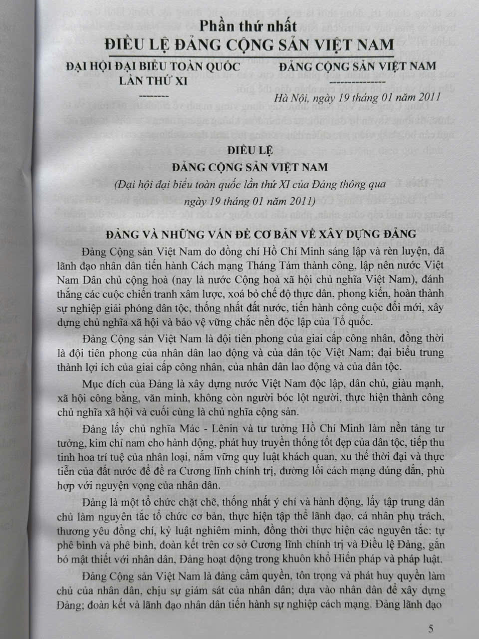 Điều lệ Đảng Cộng sản Việt Nam (gọi tắt là Điều lệ Đảng) do Đại hội đại biểu toàn quốc lần thứ XI thông qua (ngày 19/01/2011).