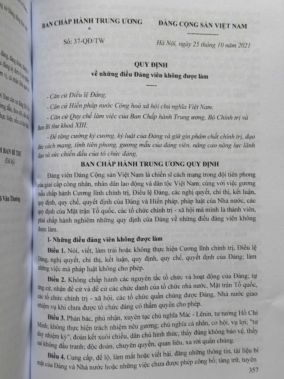 Quy Định 37-QĐ/TW: 19 Điều Đảng Viên Không Được Làm Mới Nhất | TVPL