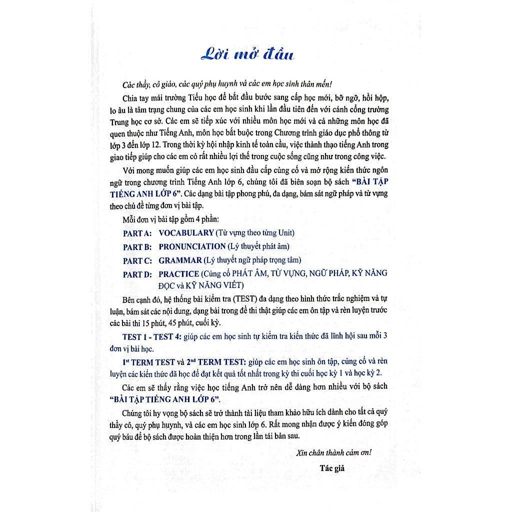 Để giúp học sinh lớp 6 sử dụng hiệu quả từ vừng và ngữ pháp trong các chương trình học trên lớp, cuốn Sách bài tập Tiếng Anh 6 Global Succes được tăng cường củng cố các từ vựng, cấu trúc ngữ pháp đã học, nhằm hướng tới mở rộng vốn từ vựng của học sinh thông qua các dạng bài tập khác nhau.