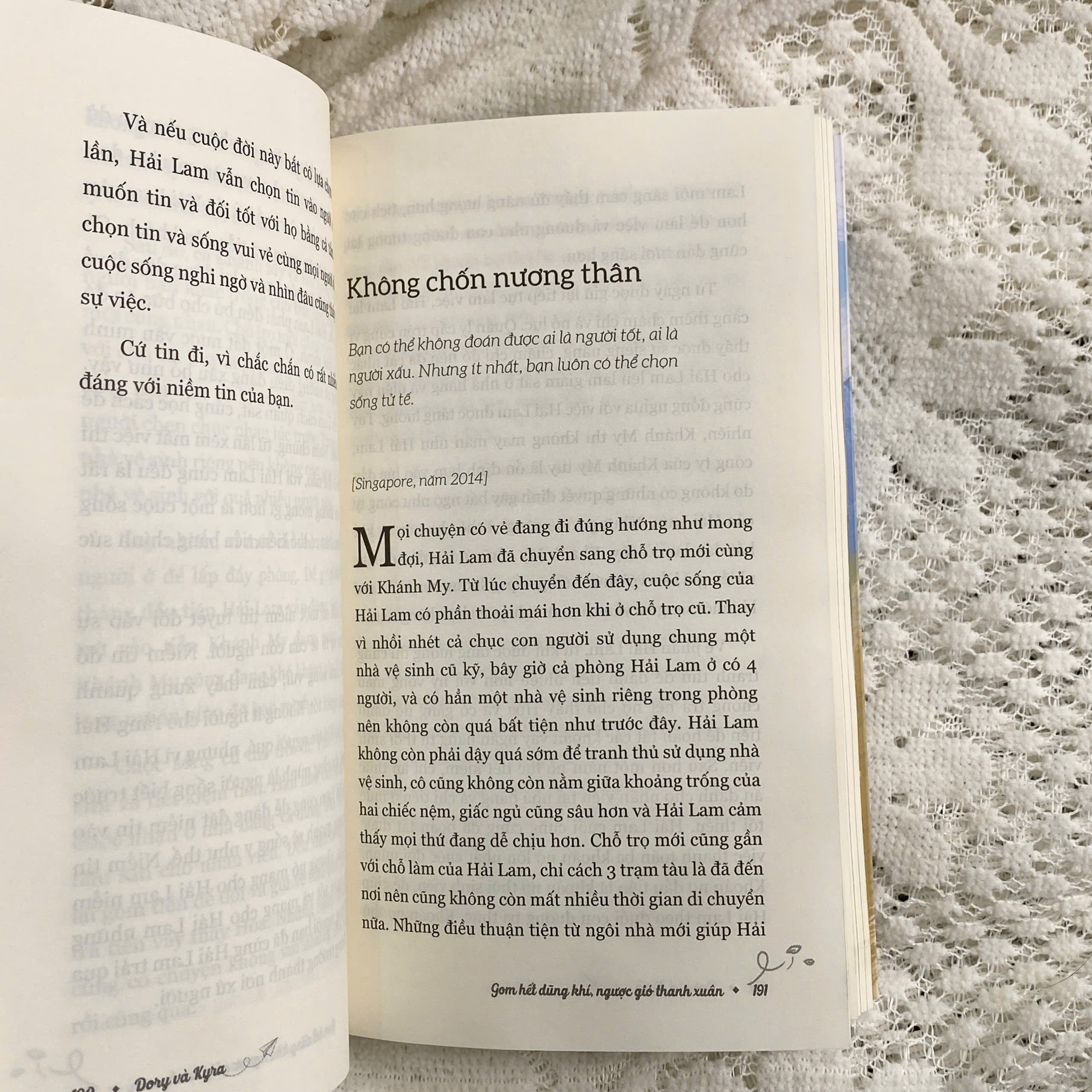 Được viết bởi Dory và Kyra, “Gom hết dũng khí, ngược gió thanh xuân” là câu chuyện có thật về Hải Lam - một cô gái đã đi qua những chặng đường đầy thử thách nhưng vẫn kiên cường đứng dậy, bước tiếp và tỏa sáng theo cách của riêng mình. Từ một cô bé miền Tây vô tư, lớn lên trong sự yêu thương của gia đình, đến một người phụ nữ dám đương đầu với số phận. “Gom hết dũng khí, ngược gió thanh xuân” chính là một tấm gương phản chiếu tuổi trẻ với những khắc khoải, vấp ngã, mất mát và cả niềm hy vọng mãnh liệt.