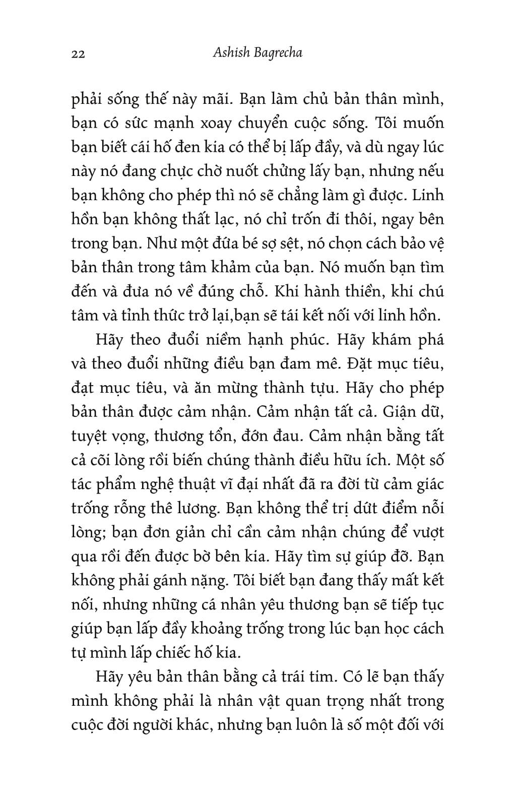 “Gửi bạn vòng tay ôm cho những ngày lạc lối” của Ashish Bagrecha là tập hợp thư từ được viết ra với tất cả tâm huyết, như một cái ôm ấm áp dành cho những ai đang trải qua thời kỳ khó khăn. Bagrecha, người nổi tiếng với câu chữ đơn giản nhưng sâu sắc trên mạng xã hội, đã đặt cả tâm hồn m.ình vào cuốn sách này, và điều đó thể hiện rõ qua mỗi lá thư.